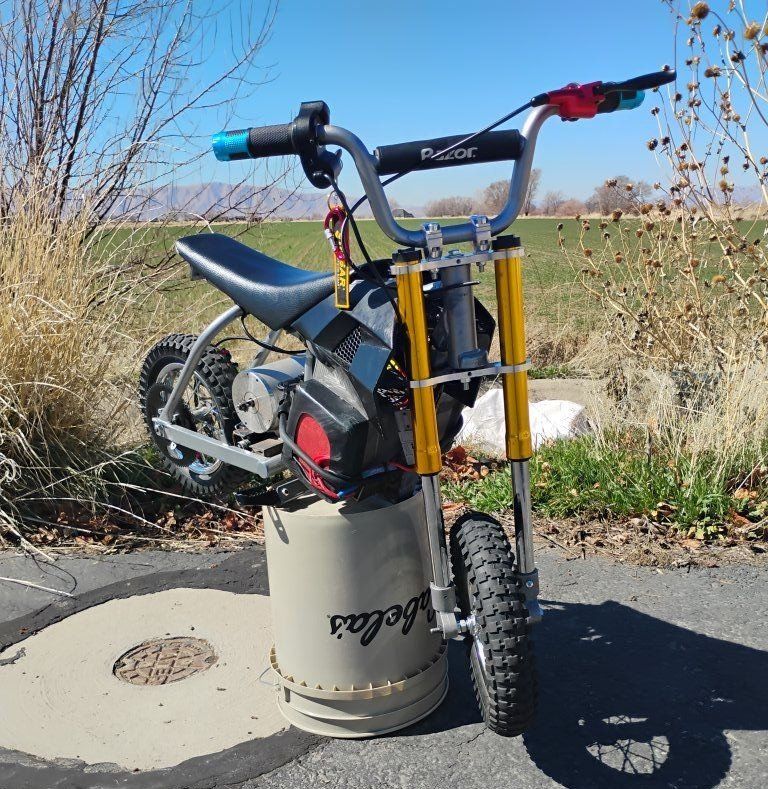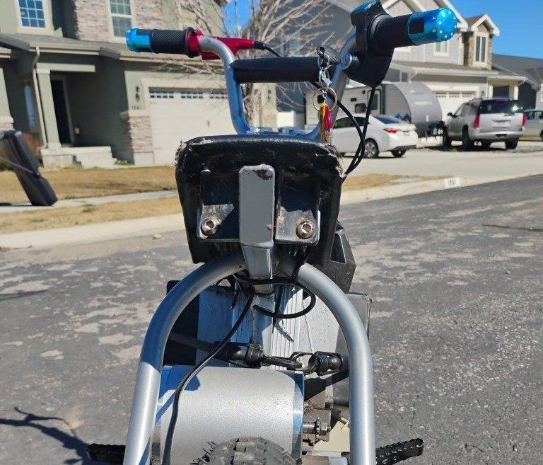Venmoelectric mini emoto 35mph (I am 105 pounds) you get about 1 hour and a half of aggressive riding, 48v 1800w 4500rpm forks 50 dollars throttle was 20 brakes were 60 battery was 279 motor and controller were 150, new tires were 25 and the frame was a real tree razor mx350 for 248. it needs a chain which is 14 dollars and a new front bearing set which is probably 5-15 willing to negotiate, in all the build costs 832 I'm selling for 550 obo, everything electrical works and I have the charger added spare key
