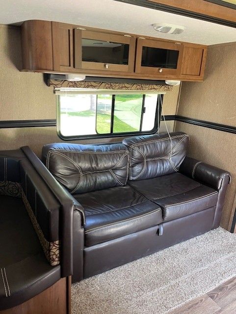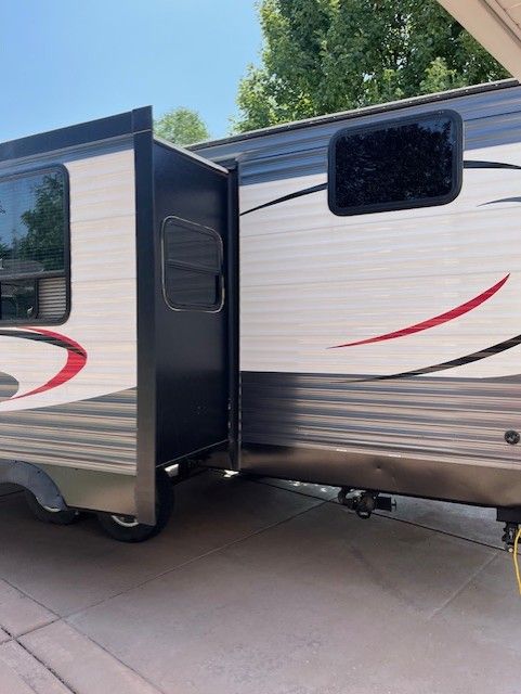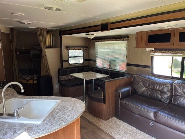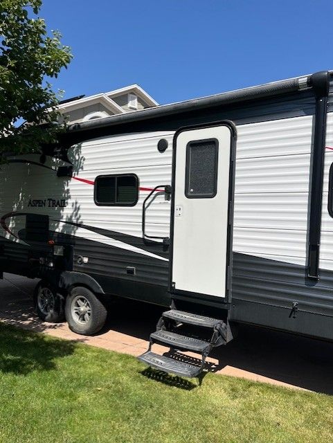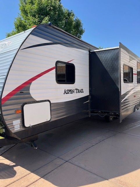 2016 Dutchman Aspen Trail 28' travel trailer, sleeps up to 10. 1 large slide giving plenty of space when open. Has a rear entrance into the bathroom for the messy camping or hunting trips. Brand new electric awnning (new 2025), electric tounge jack, outdoor shower. Insides is loaded for comfort, Samsung Flat Screen TV with DVD player. Indoor & outdoor speakers, Microwave, wrap around dinning table. Large pantry and plenty of storage. Queen bed up front (accesible both sides), Double size bunks (storage under the bottom), couch pulls out and table folds down creating plenty of sleeping room. Furnace & AC. I pull this with 1/2 ton truck with equalizer hitch.