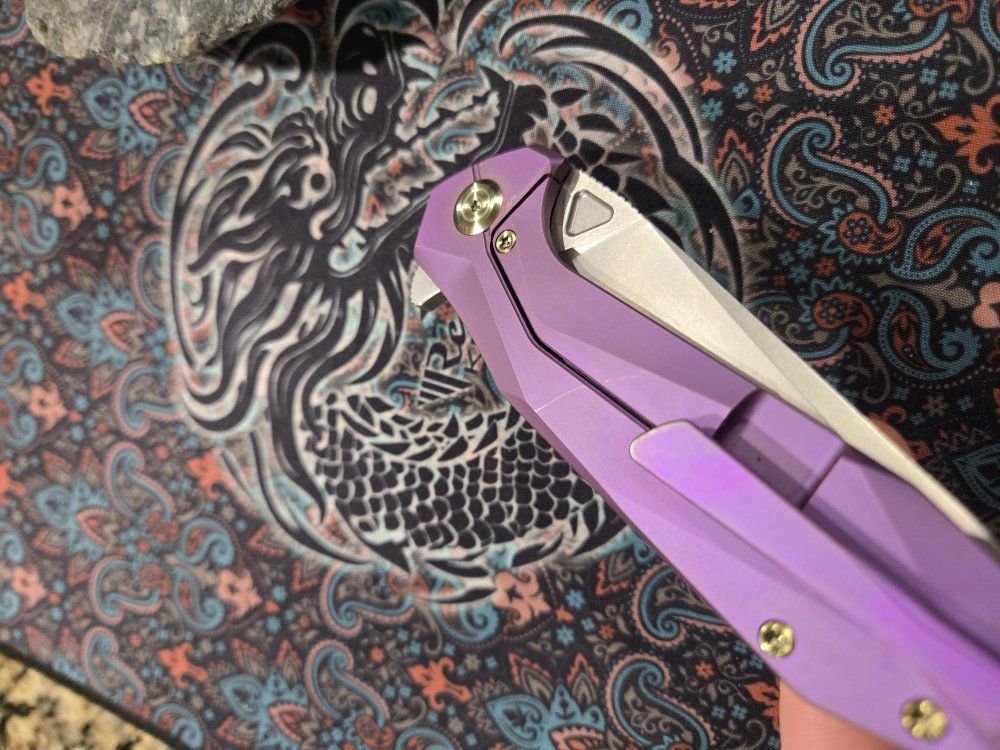PayPalKubey Nova, purple anodized titanium handle, 14C28N blade. First owner, mild use. Had a little wear on it, still very sharp. Comes with box.