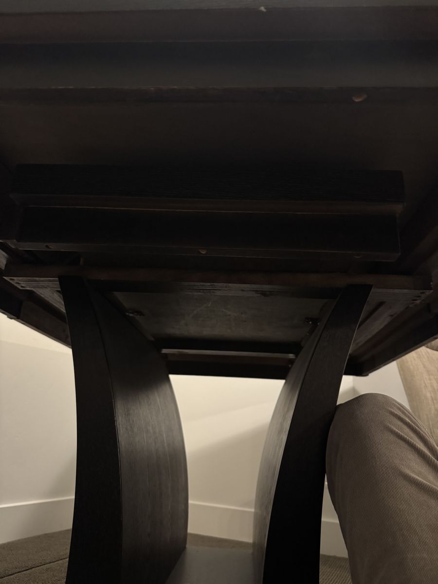 The pedestal base provides excellent leg room and a modern look. This is a solid, substantial piece — not lightweight or flimsy