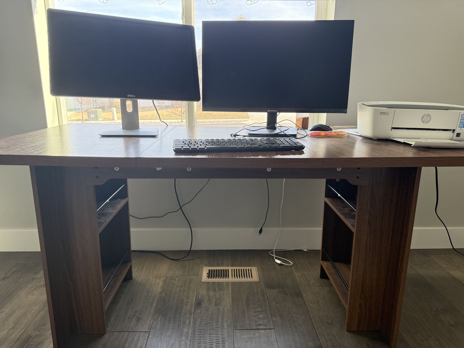 ApplePayMoving/downsizing 63”Lx30”T LIKE NEW I love the aesthetic and color of this desk. It’s only a year old and in new condition. It’s not as heavy as solid wood, but it’s definitely heavier and sturdier than cheap particular board type furniture. I can help carry it out in one piece, or it can be partially disassembled. It cost me around $275 last year.