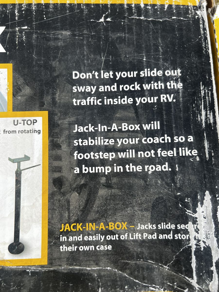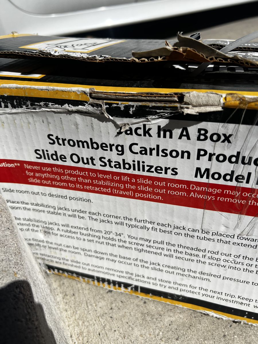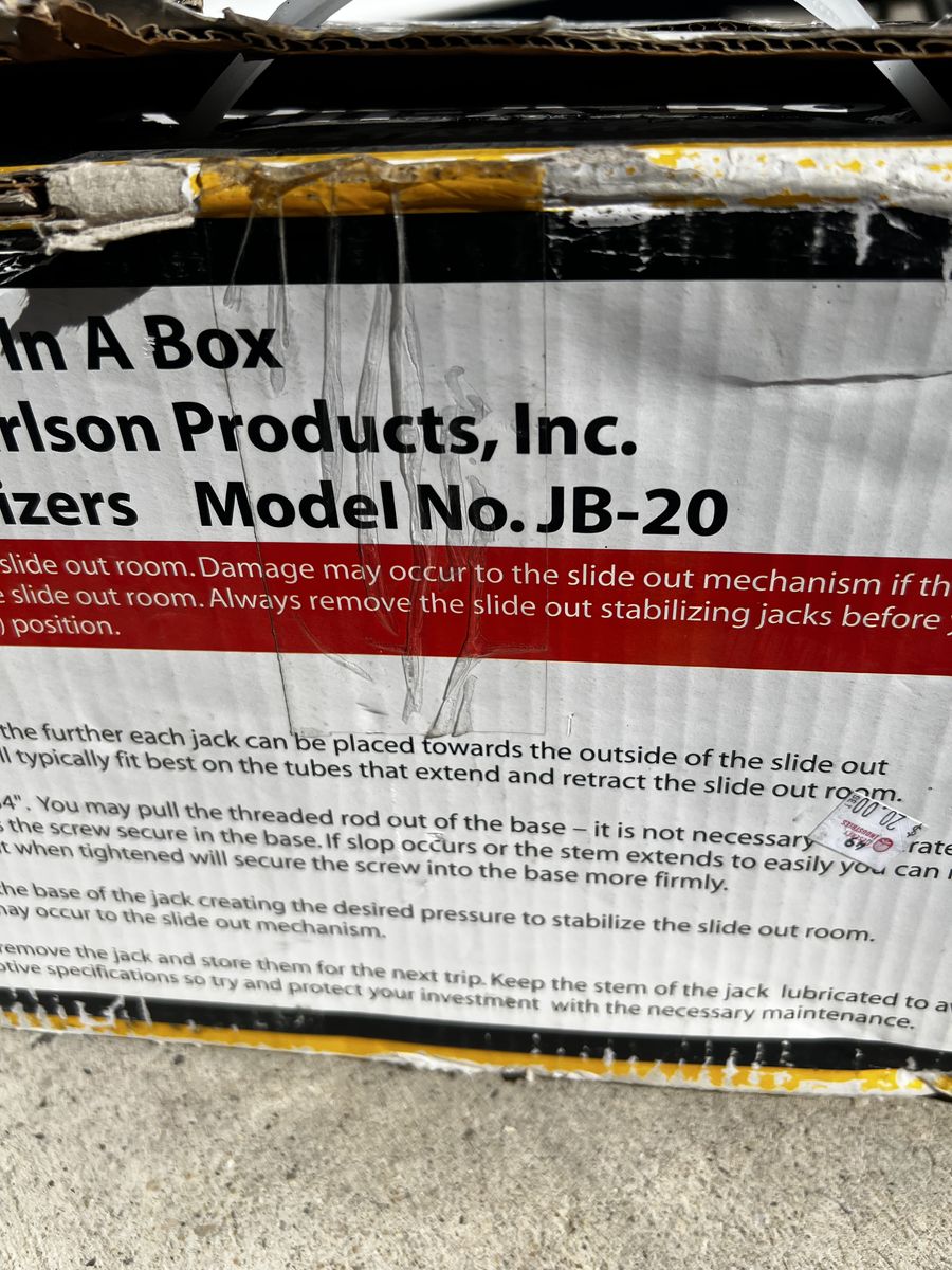 Jack in a box slide out stabilizers. Adjusts between 20-34inch Model number JB-20
