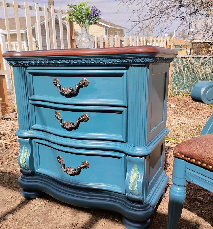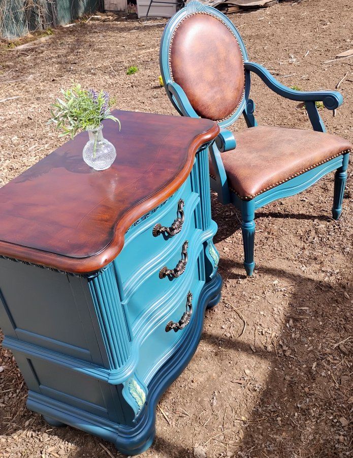 GooglePayBeautiful refurbished French Provincial style dresser with matching accent chair. This elegant set features graceful curves, classic carved detailing, and timeless vintage charm inspired by traditional French countryside furniture. Pieces in this style are known for their curved lines, ornate carvings, and elegant craftsmanship that add a romantic, sophisticated feel to any room. � Chairish +1 The dresser has been professionally refreshed and sealed with a protective finish to preserve the wood and ensure long-lasting durability. It offers generous drawer storage while making a stunning statement piece for a bedroom, entryway, or boutique-style space. The matching accent chair complements the dresser perfectly and completes the look with classic French-inspired elegance. Perfect for anyone who loves vintage, shabby chic, farmhouse, or French country décor. Condition: Refurbished and sealed for protection Style: French Provincial / French Country Includes: Dresser + Matching Accent Chair