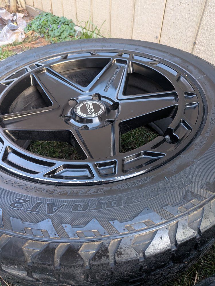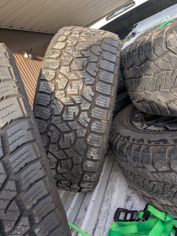 would set of wheels comes with three basically new tires. toyos good deal for the price. little bit of curb rash and the set of wheels on it. Will accept trades or offers. beadlocks forged rims, black rims or make me an offer for the rims