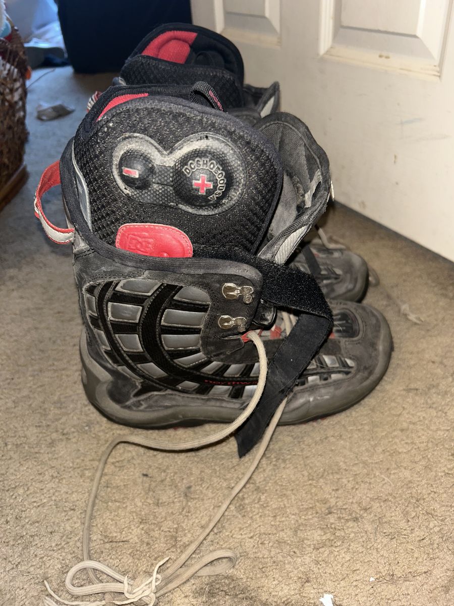 CashAppSize 10 DC snowboardlong boots size 10. Good condition just dusty and some fraying at the end of laces