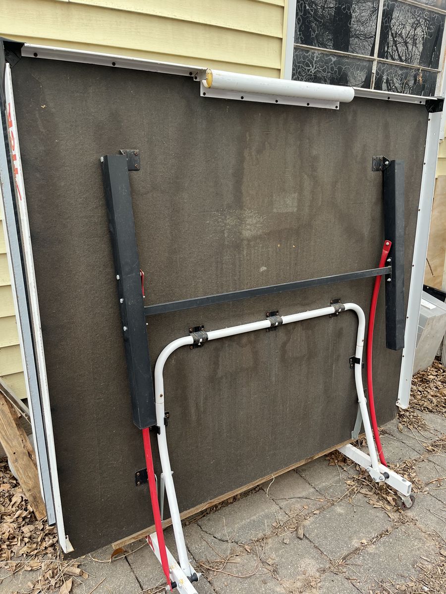 Fold out ping pong table, top weathered