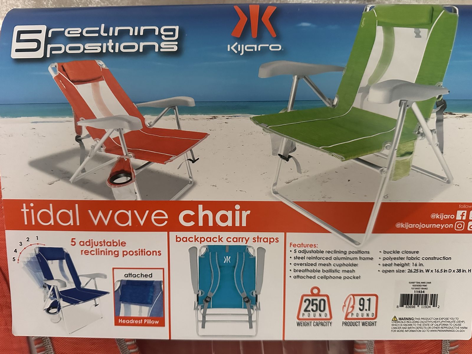 New inbox, kijaro Coast tidal wave chair in Fiji Sunset Orange Heather print. Pick up East Layton