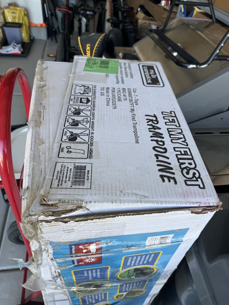 • Free / pickup only • Includes the actual trampoline mat and padding but no steel frame • Overall Diameter is 84 inches (7 feet)