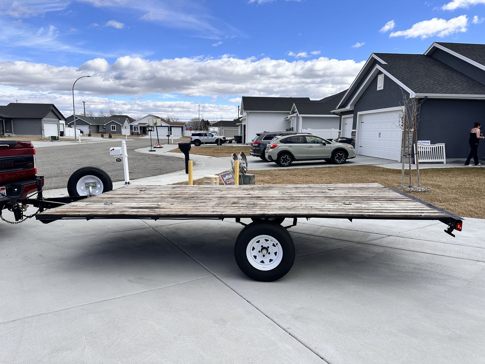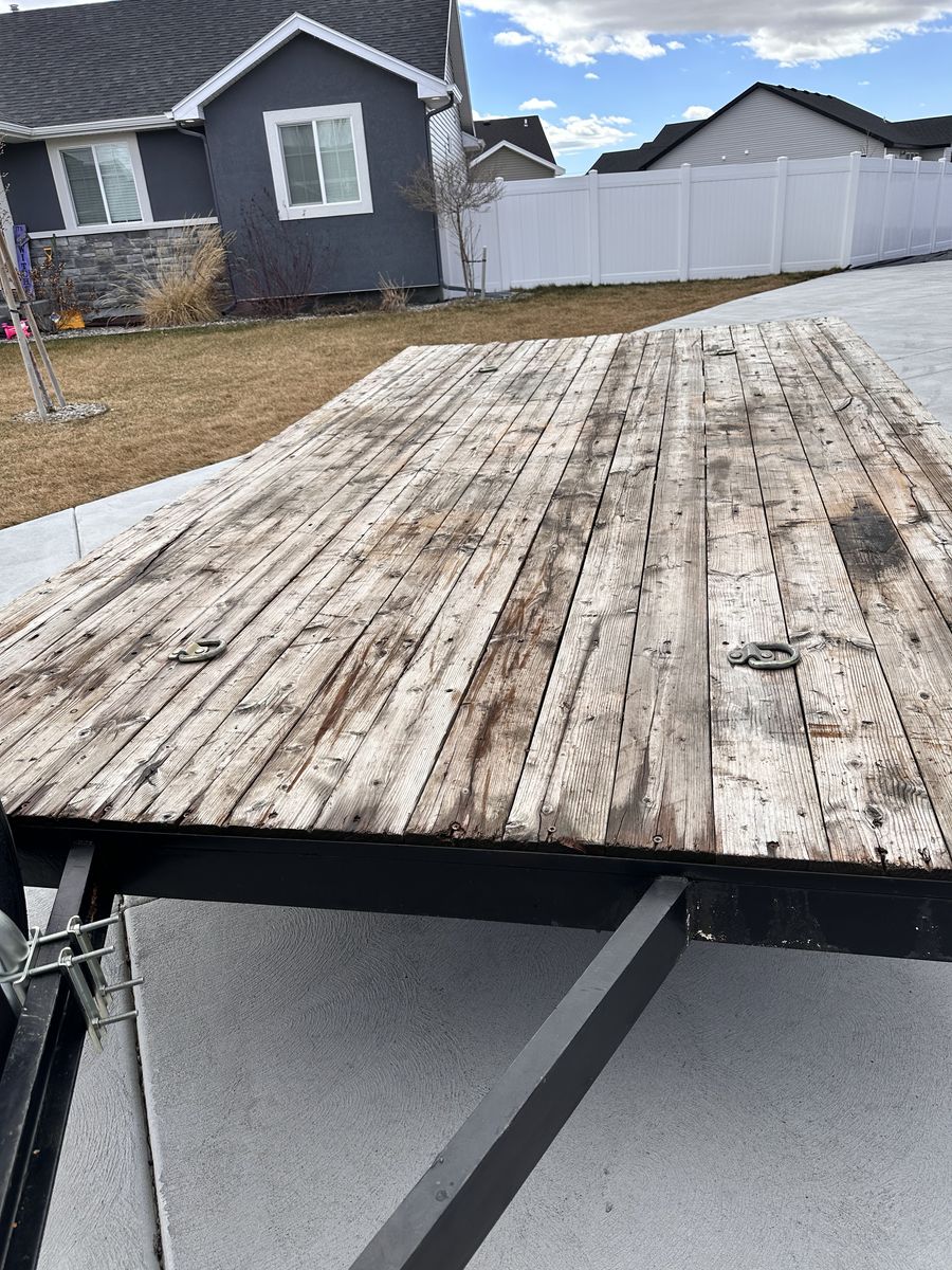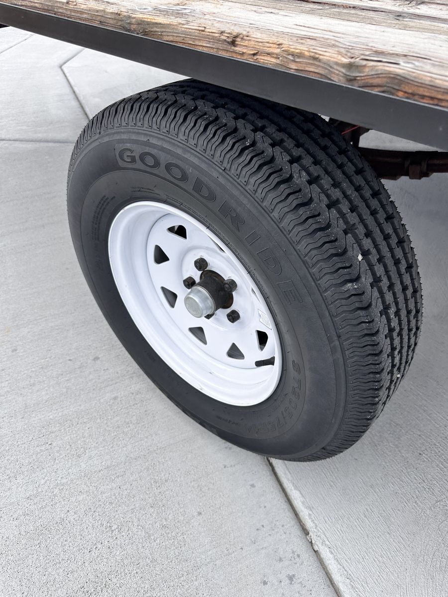 Nice Deck over utility/UTV/ATV flat bed trailer •Ready to work •Single Axle, rating is 3,500 lbs. •Center rise axle TONS of ground clearance •Bearings serviced 3/7/26 •Brand new axle seals •All tires including spare are brand new •Brand new lights and all new wiring •Deck is in great condition •Located in Idaho falls. •Measurements in photos • Will not respond to is this available, if the ad is up it’s available.