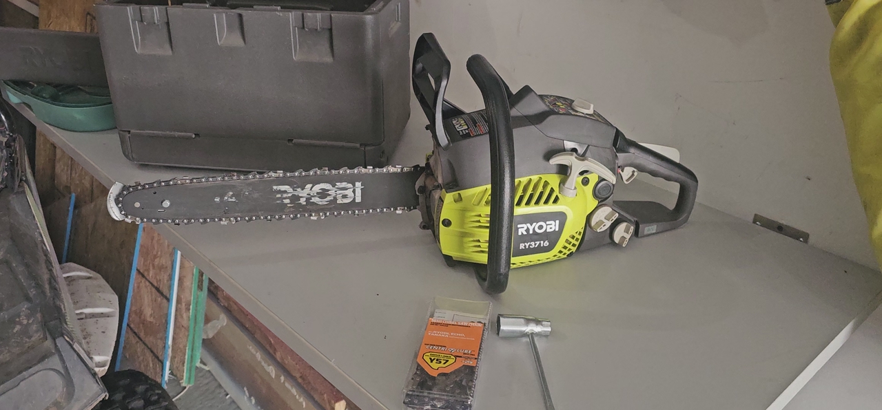 I bought this to take down a tree in my yard and now longer need it. it has 2 chains and a hard case.