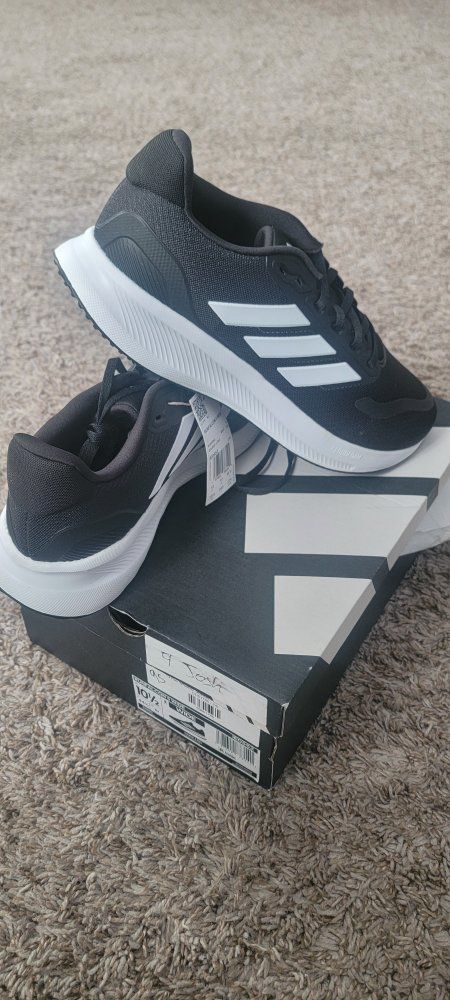 ZelleBrand new Run Falcon 5 Adidas black and white wide in box. Never worn. Ordered online and delivered wrong size. Don't want the hassle of refund process. I paid $55. Asking $40 obo. My loss your gain