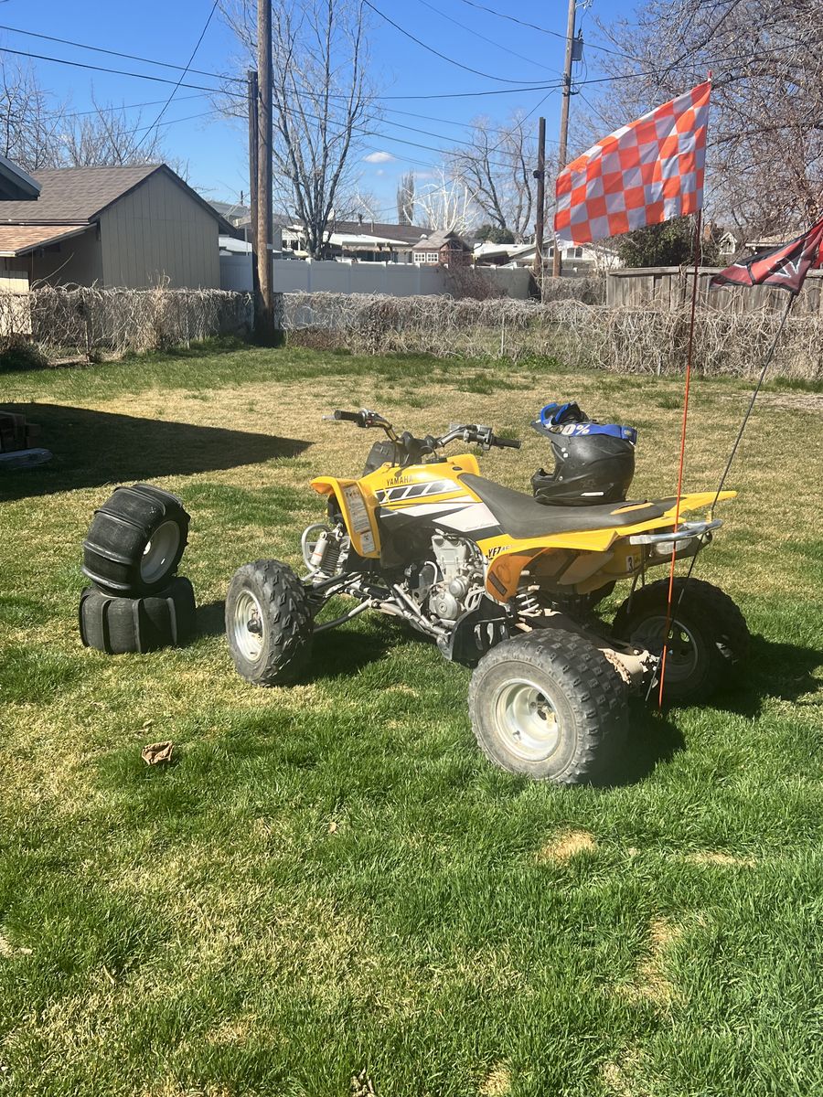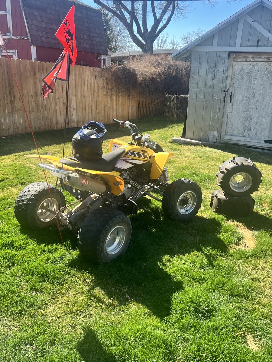 Runs great, electric start. Starts right up and is scary fast. 2 sets of paddle tires and nubs, all with rims. Replaced jets in carburetor last year. No mechanical issues at all. Stored in door. Helmet, goggles and two flags included. Only thing wrong is seat needs new wrap shown in picture. Title in hand. 3400.00 obo