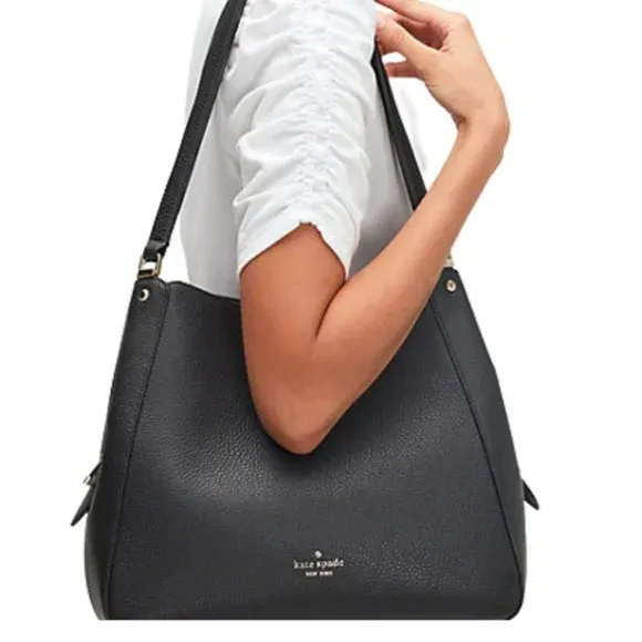 VenmoKate Spade Leila Medium Triple Compartment Shoulder Bag Pebbled Black Leather Like New Condition Kate Spade Leila medium triple compartment shoulder bag in black pebbled leather. Like new condition — clean interior, no wear on corners. Classic everyday bag with structured shape and multiple compartments for organization.