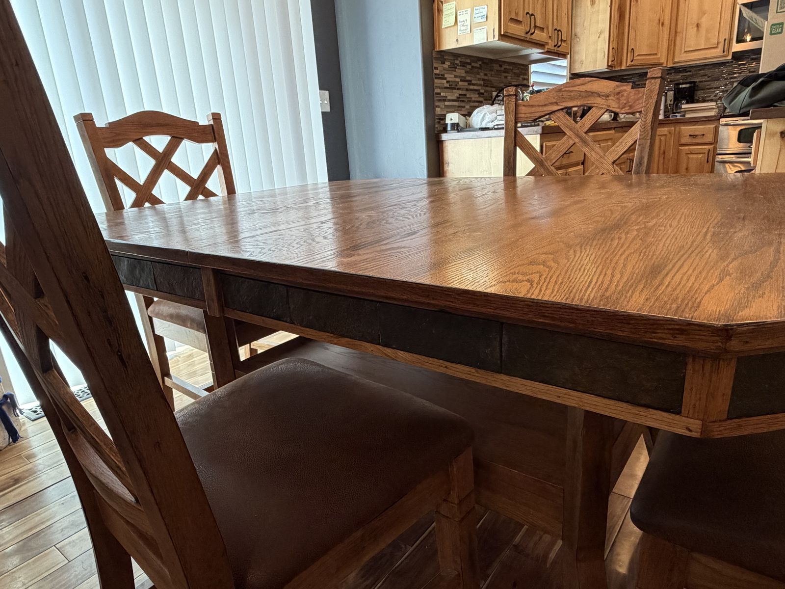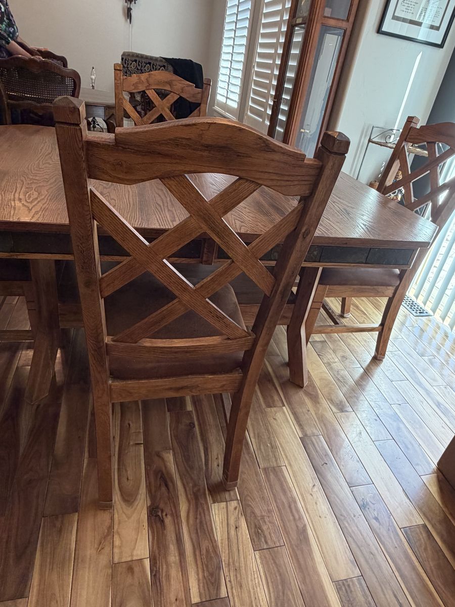 VenmoBeautiful kitchen table with 4 chairs. Has a stored leaf under table. In wonderful condition.