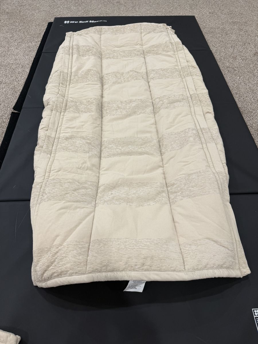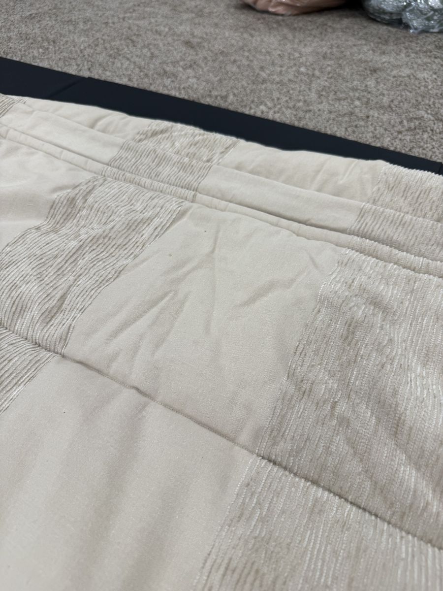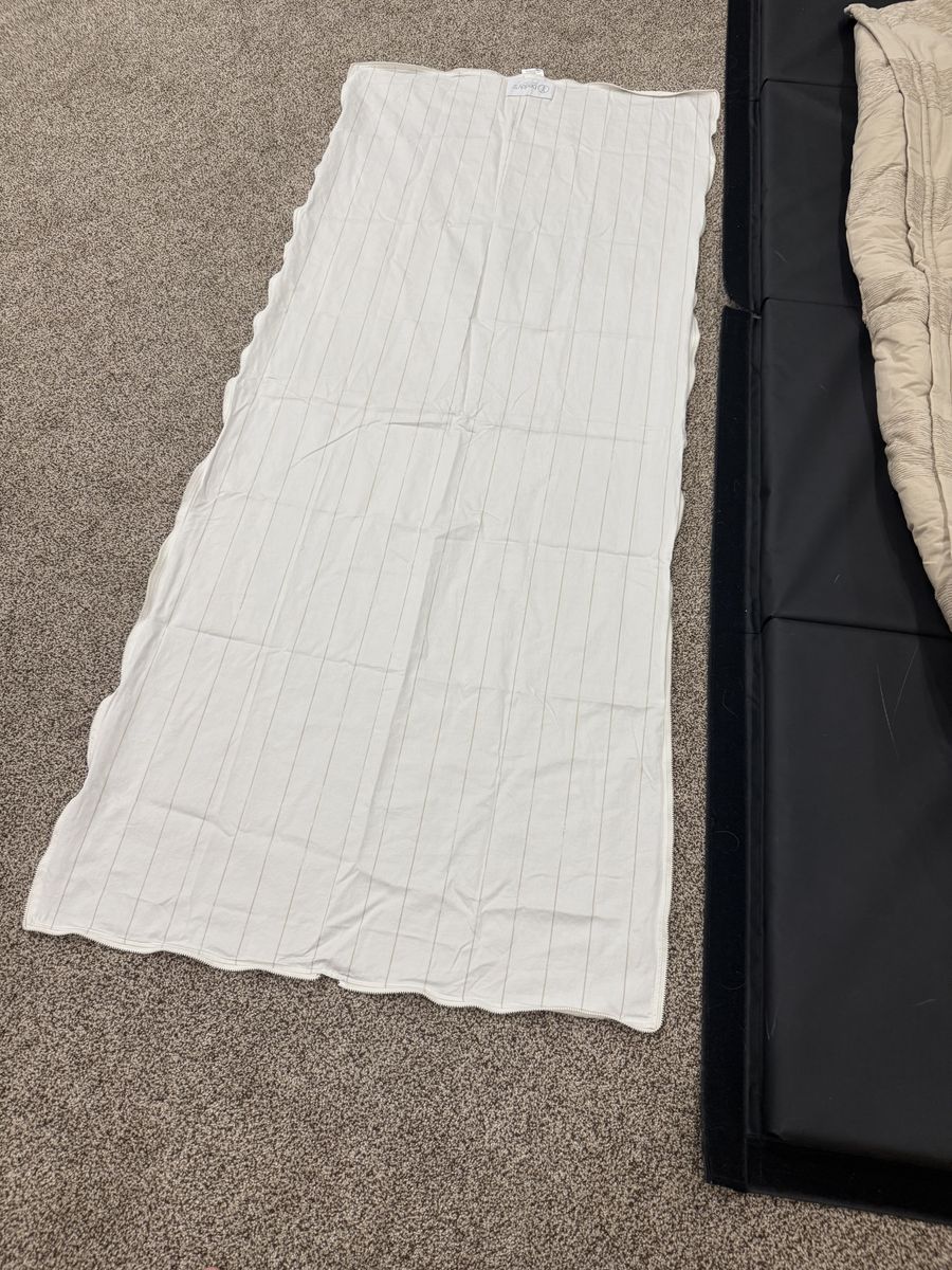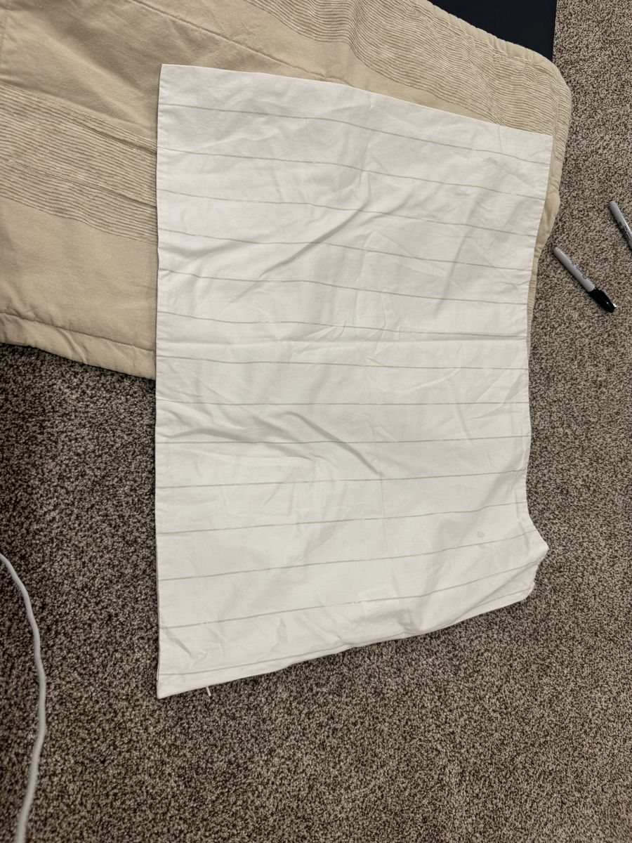 Has 2 sheets a sham and a case. Case has some stains, minor stain on top. Mar4