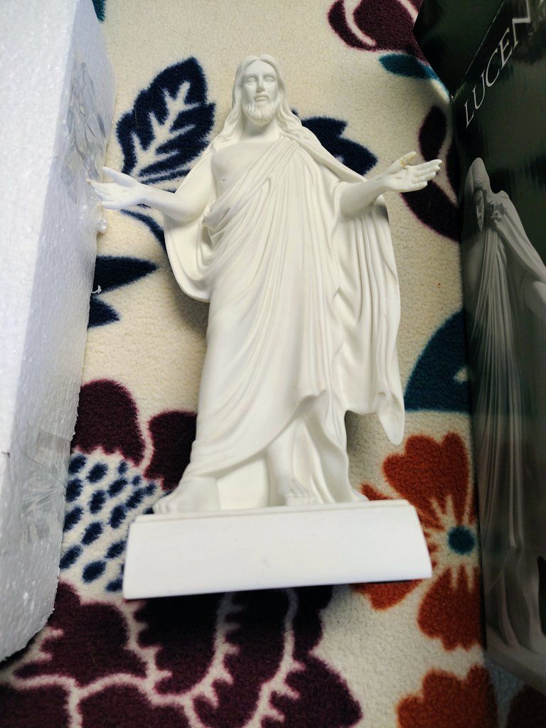 VenmoLucente Statuary Marble Christus Statue - 10" x6 3/8", Heirloom Quality for Mantel, Desk, Display. Bought for $180 still has box, Styrofoam packaging and undamaged statue.