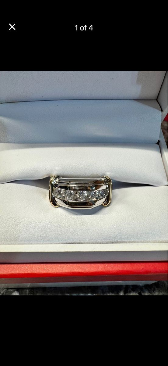 Zelle14k gold size 9 weighs 9 grams and has about 1carat in diamonds it is in great condition