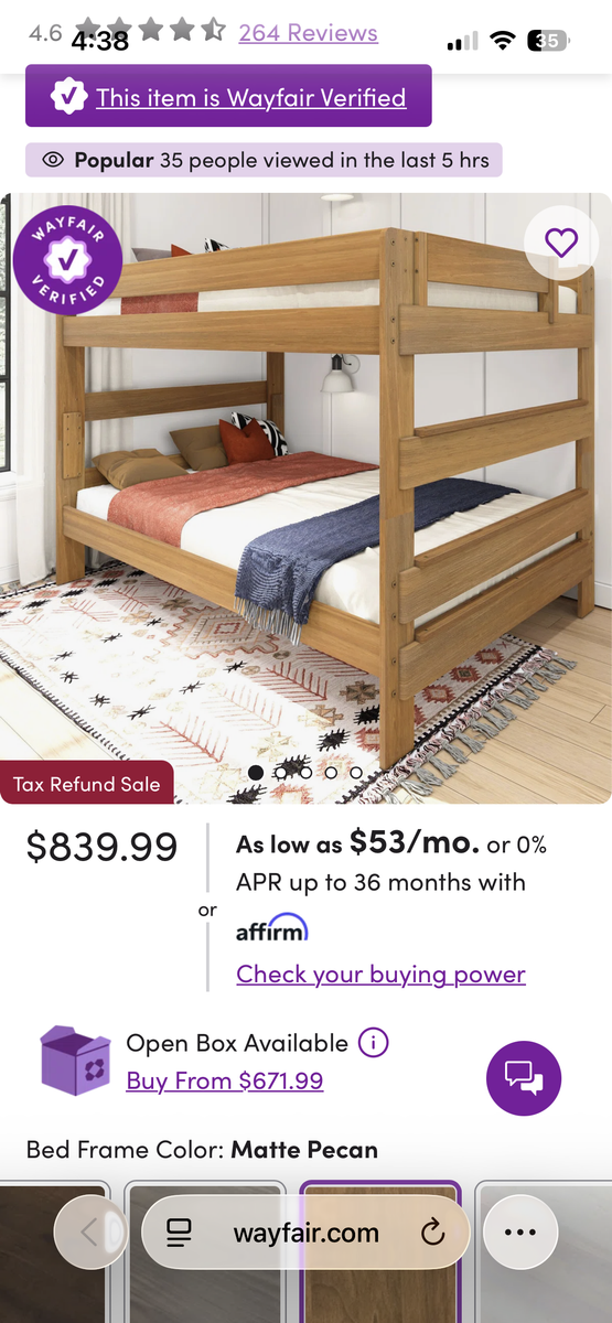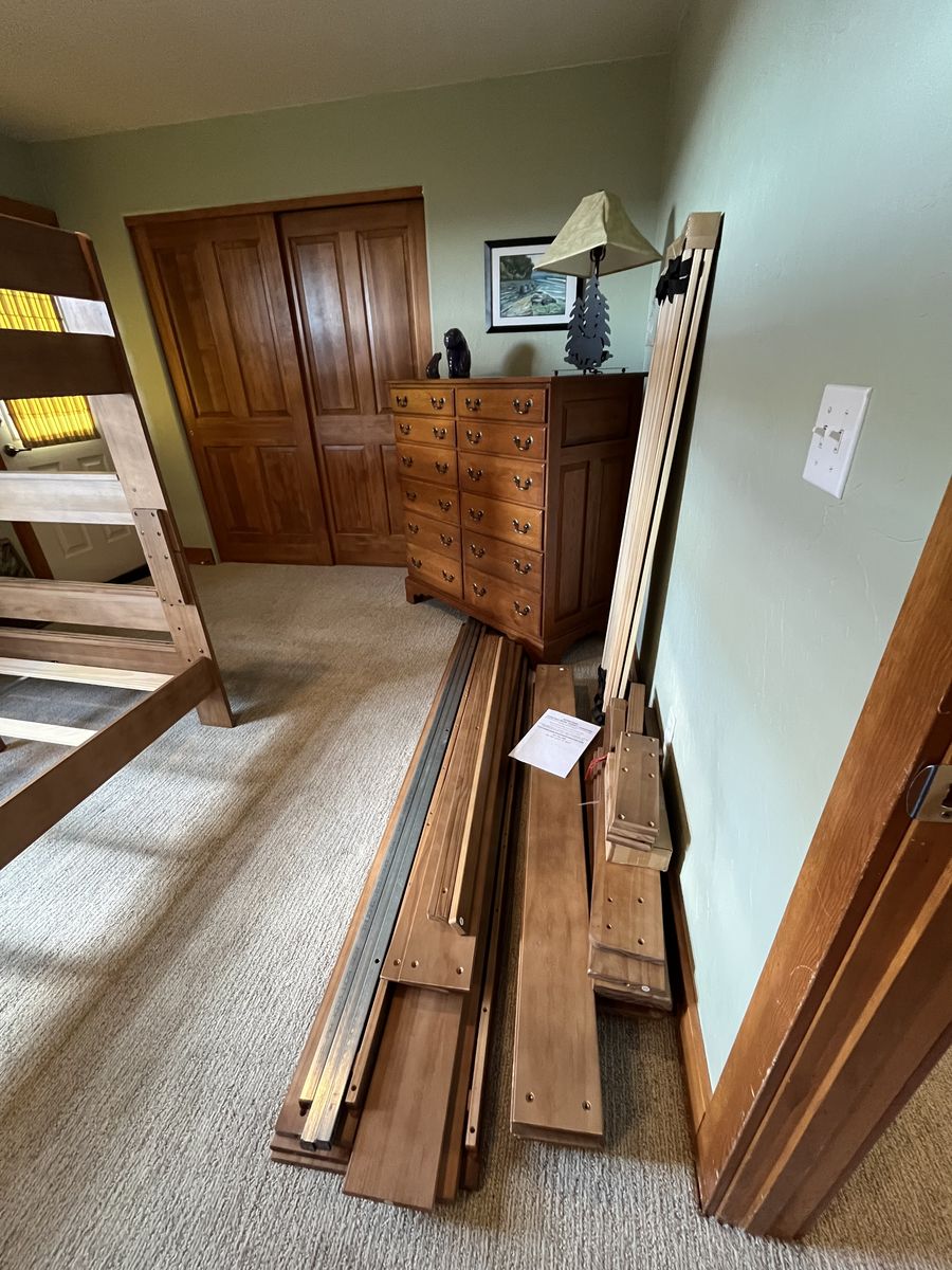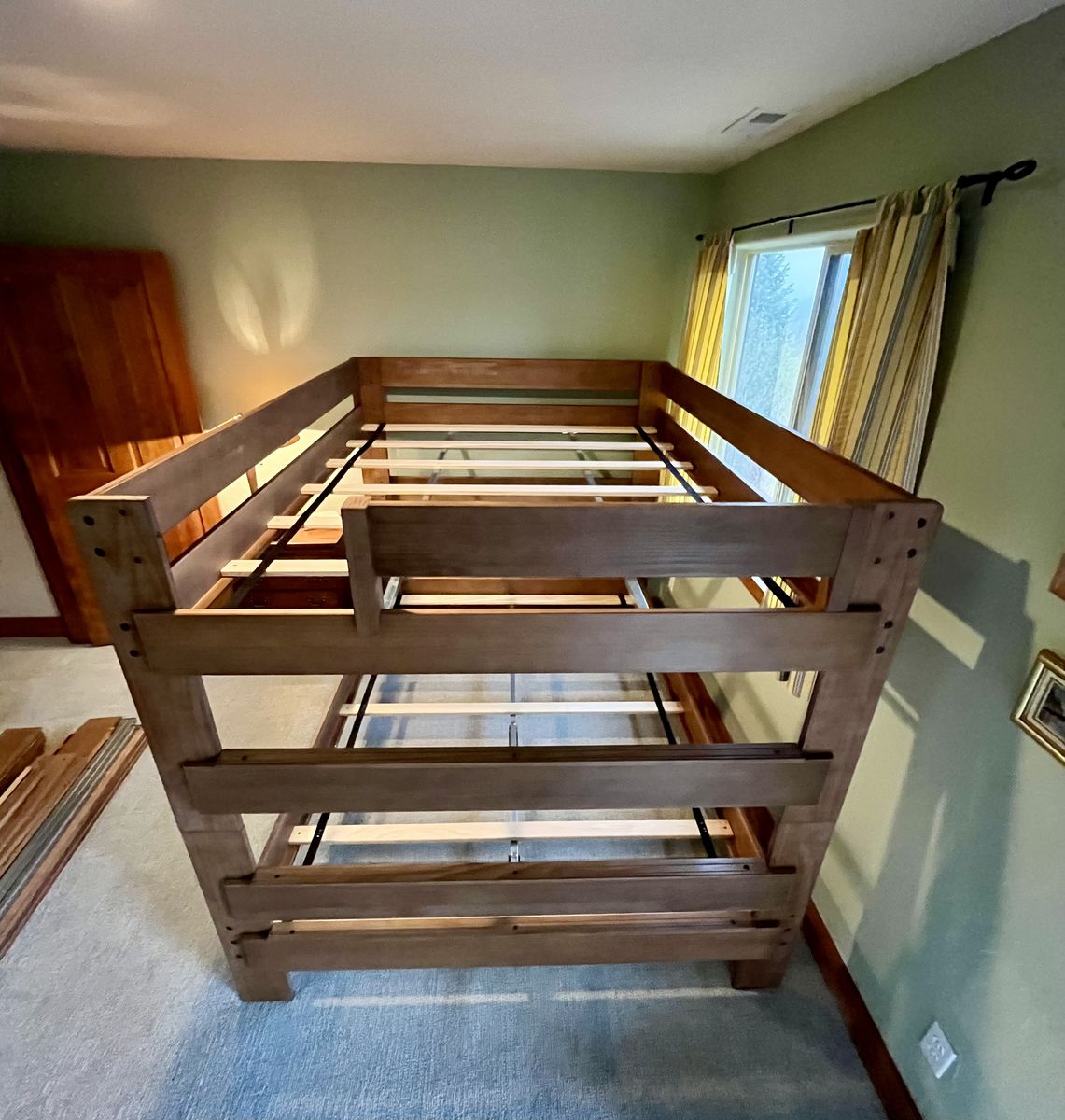 VenmoBrand new queen-over-queen bunk bed for sale in Park City near Kimball Junction. We purchased two of these bunk beds from Wayfair (retail $839.99 each) thinking we could fit both in our spare bedroom, but there was only room for one. We realized this after unpacking both sets and assembling the first bed. The bed for sale is completely new and unassembled, making it super easy to transport! All pieces and instructions are included — we just don’t have the original boxes. The photos show: • The first bunk bed we assembled (for reference) • The complete unassembled set beside it, which is the one being sold Details • Queen over Queen bunk bed • Color: Matte Pecan • Solid wood construction • All parts and hardware included • Never assembled or used • From a very clean, nonsmoking home with no kids or pets Bonus: We had to purchase two allen wrench drill bits to assemble the first bed. Since we don’t need them anymore, we’re including them plus a FREE cordless drill with the purchase. When you pick it up, we’re also happy to share the tips we learned while assembling the first bed to make your setup easier. Price: $624 Payment: Cash or Venmo Location: Park City near Kimball Junction Pickup only