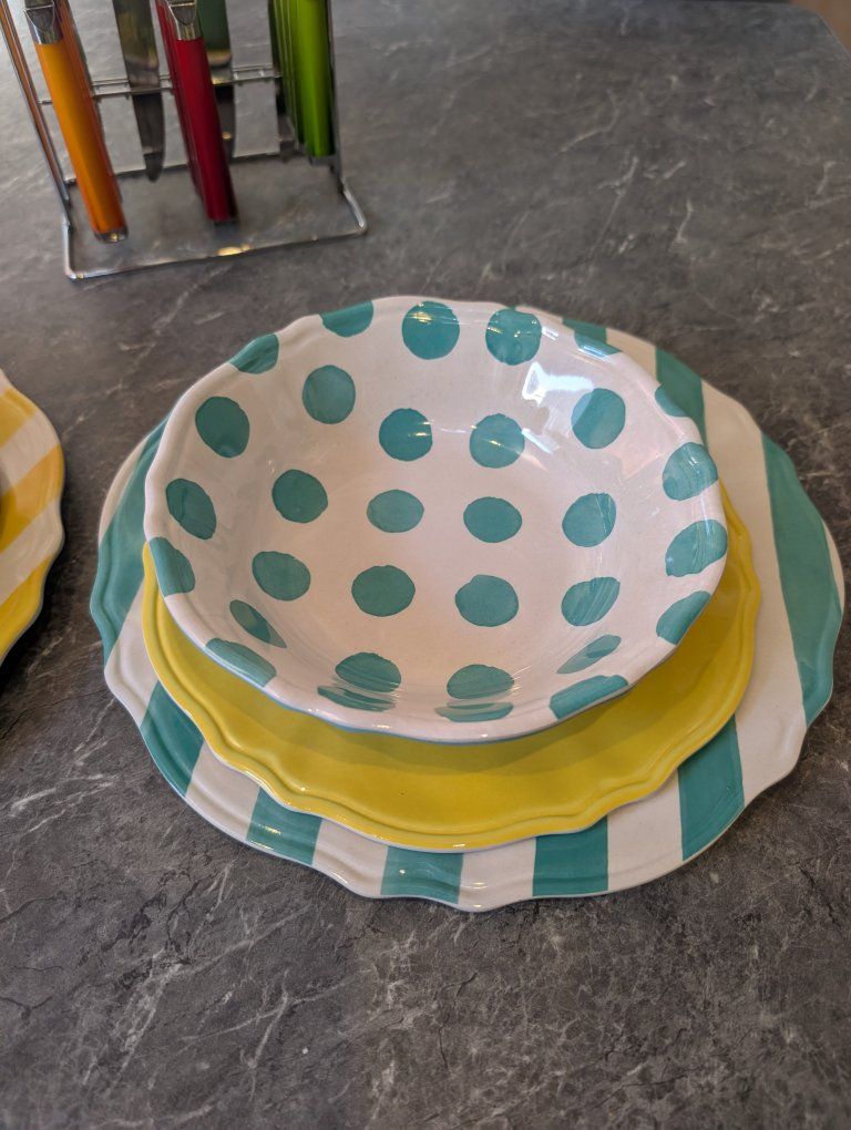 Includes: 4-spoons 4-knives 4-forks 2-bowls 2-plates large 2-plates small
