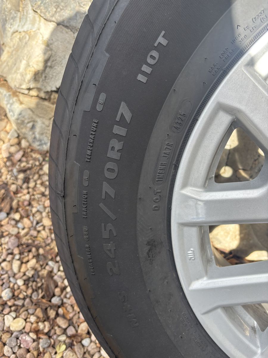 Details:• Brand: Goodyear Wrangler • Size: 245/70R17 • Condition: Like new • Mileage: 50 miles total • No damage, plugs, or patches