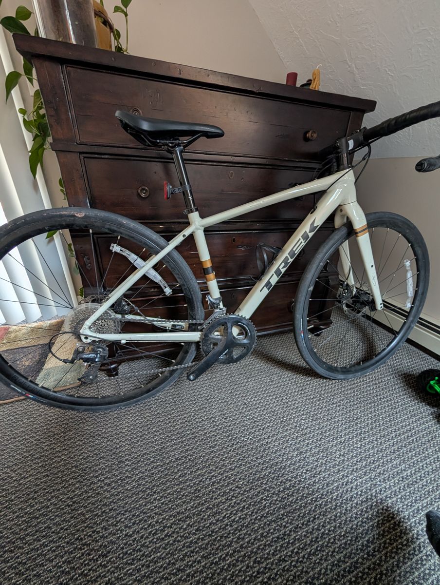 About 150 total miles on the thing. Its got a few cosmetic scratches from storage but rides fine. Bought it new for my wife 4-5 years ago and she never rides it. Retail was about $1300