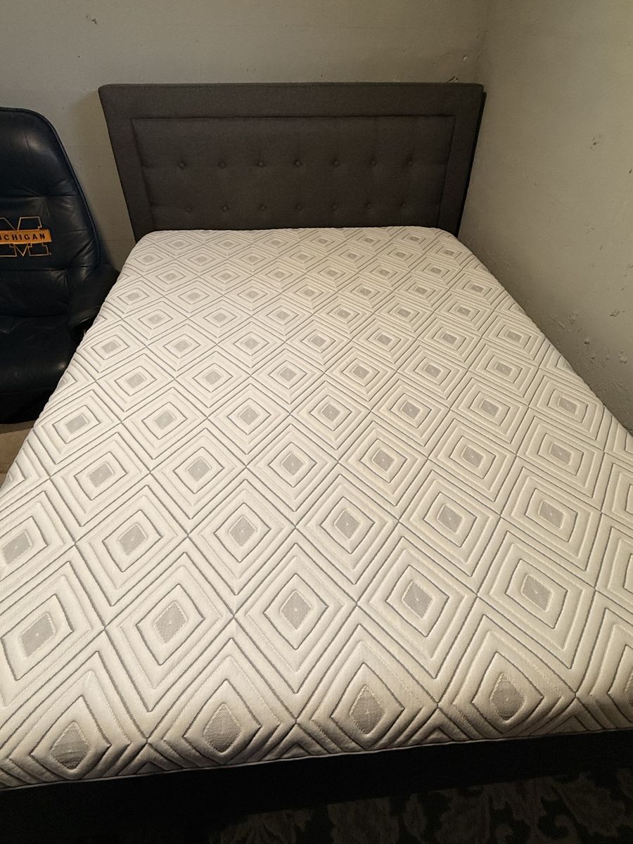 VenmoSelling a full size bed and mattress together. Both are in excellent, nearly new condition. They have both been used twice. The mattress is a 12” thick, memory foam matress. Selling them because we do not have room in the house.