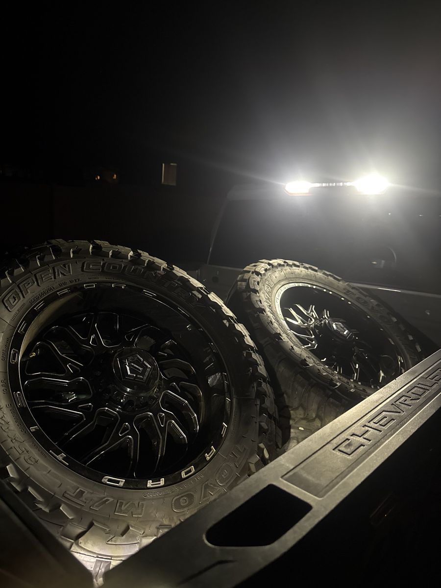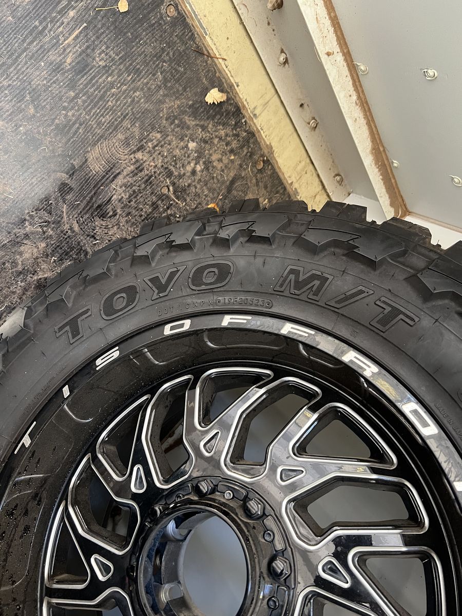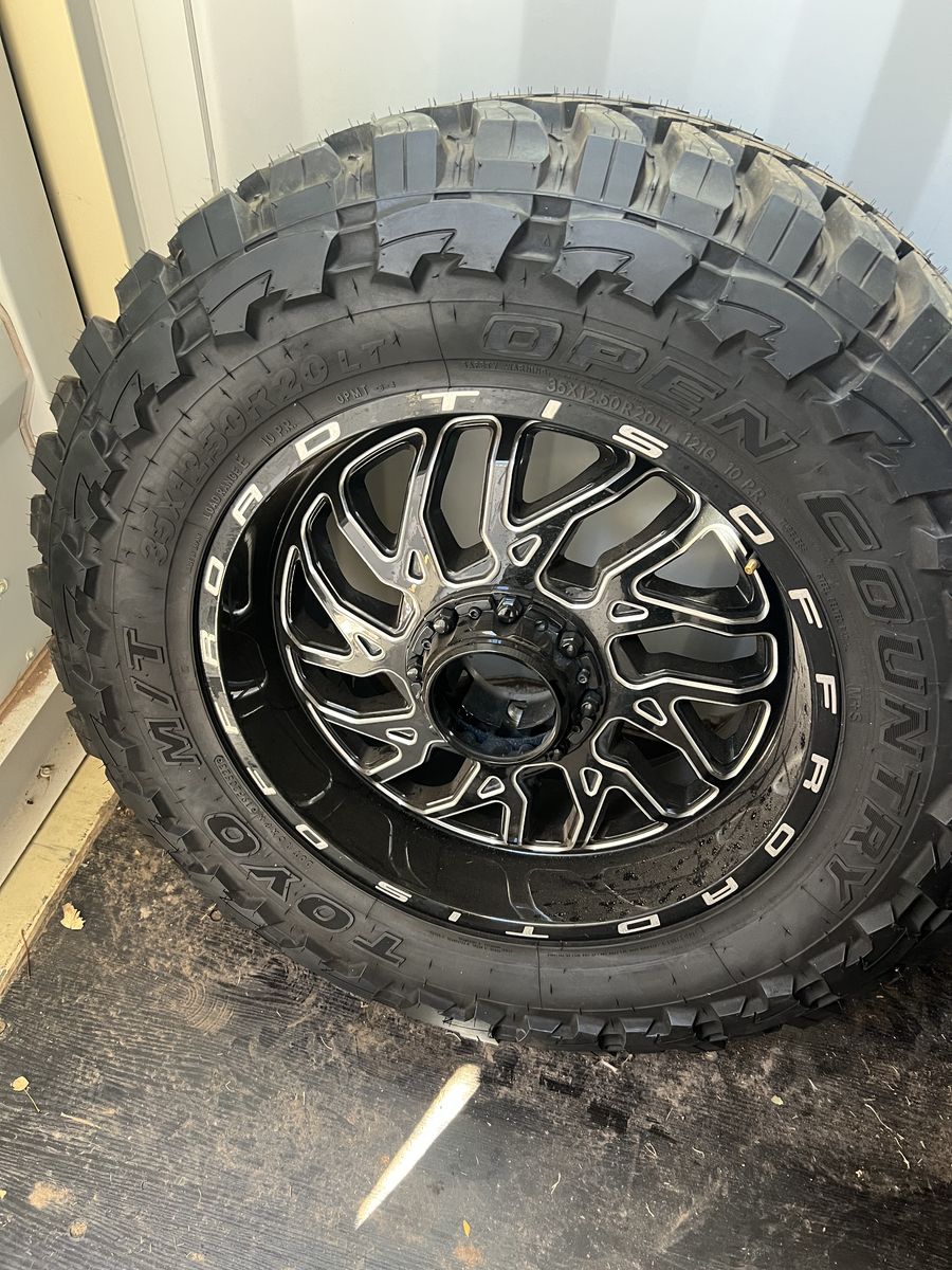 6x5.5 dual drilled 9 wide. On 35’s, pretty much new, comes with Spare. Would trade