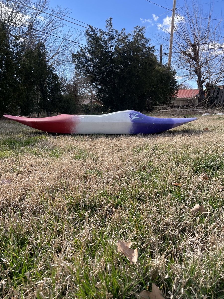 Wavesport Z is a classic full slice shaped kayak with rocker bow and stern. The volume is located closer to the paddler giving more stability while the slicey ends allow for fun river play. Really shines when carving on standing waves. Great boat for entry level to mid. No oil canning. Light river rash. Really in great shape. It would ride well for med to tall people. I’m 6’ 4”. 170-210lbs