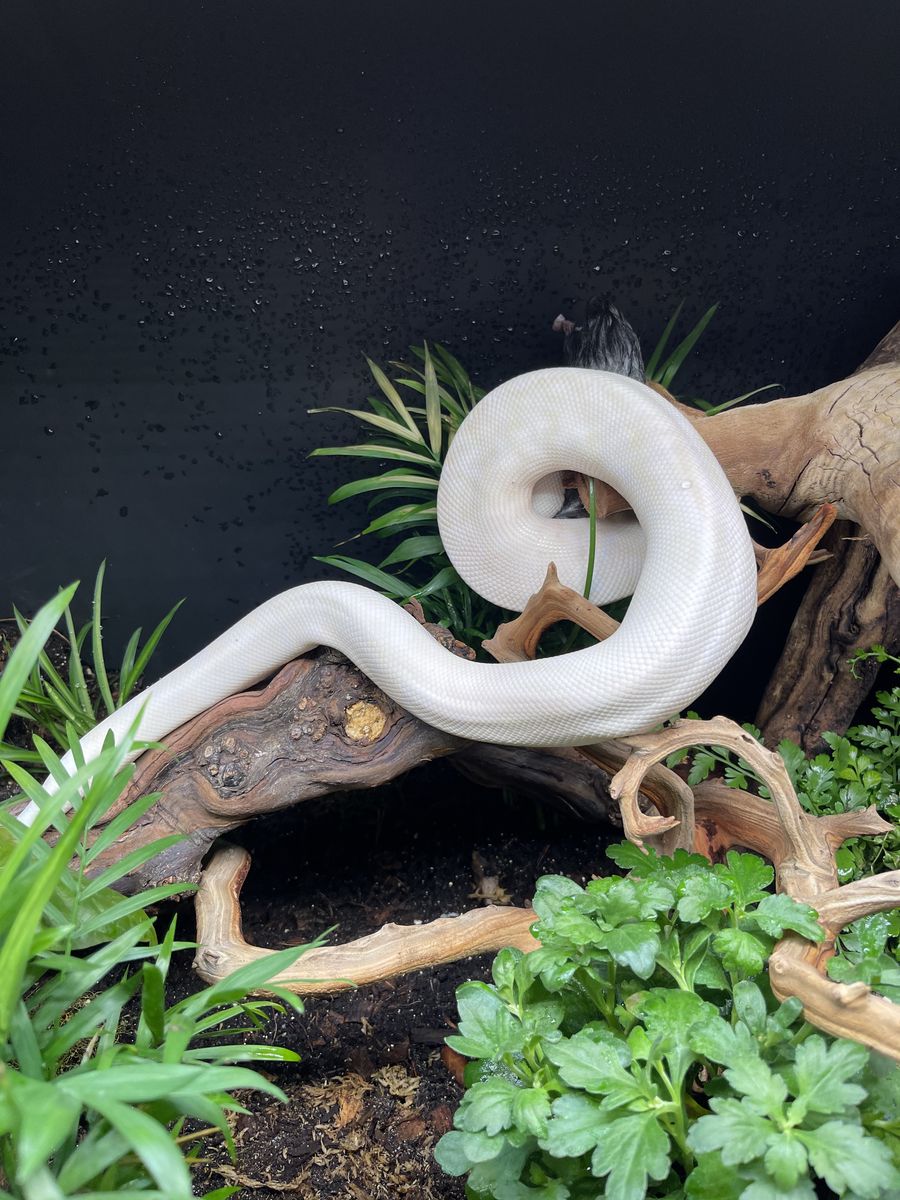 Beautiful Blue-Eyed Leucistic Ball Python available for rehoming. Very healthy and well cared for. He eats great and has amazing temperament. This is a stunning snake with bright white coloration, no pattern, and striking blue eyes. Comes with the full enclosure 4x2x2 and everything needed (including frozen rats), so it’s completely ready to go for a new home. He is approximately two years old And Im only letting him go because I’m moving and unfortunately can’t take him with me.