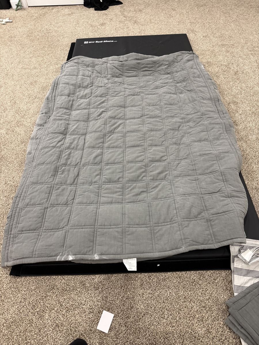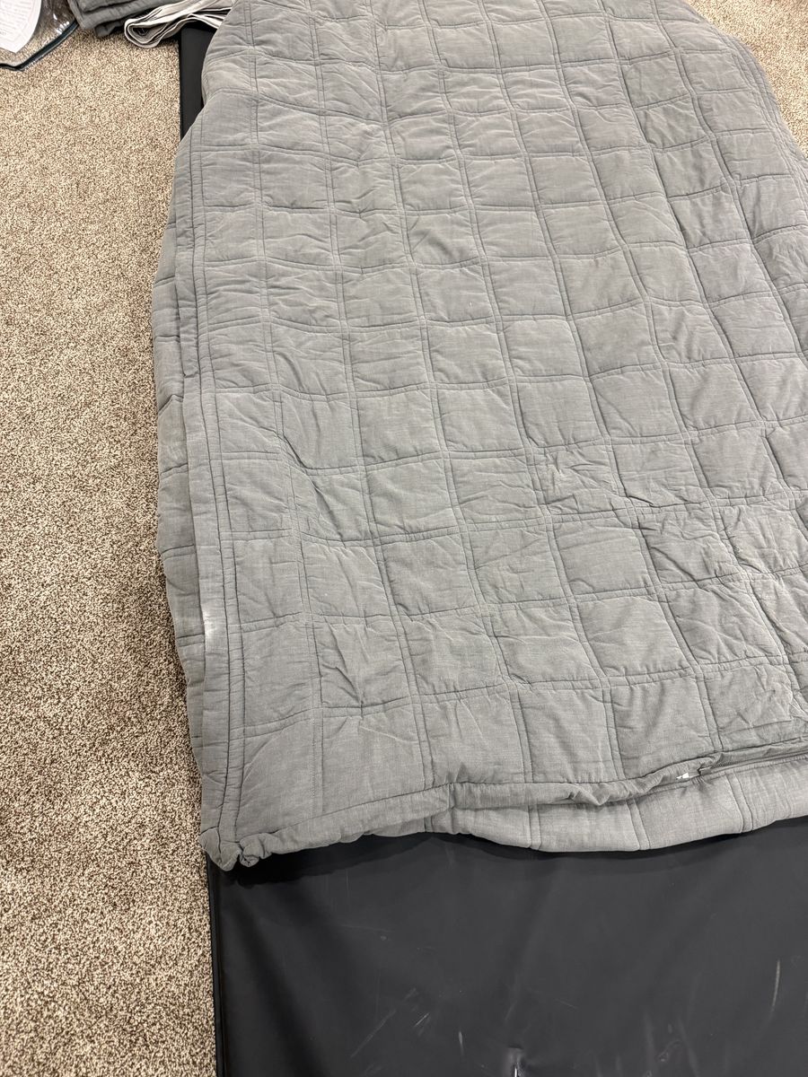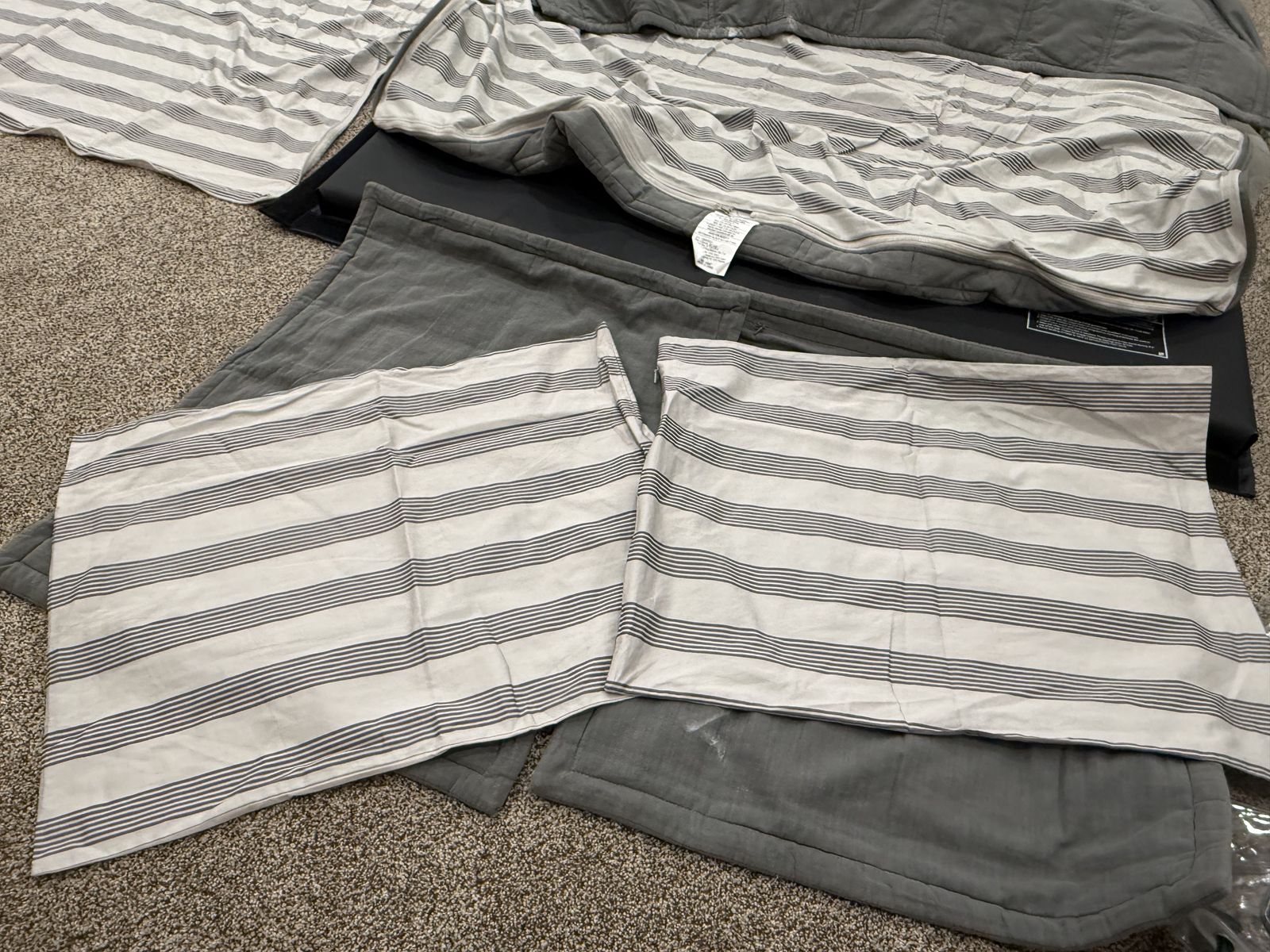 Has 2 sheets and 2 shams and 2 cases. Few very minor signs of use on cases. Some worn spots on fabric. Mar10