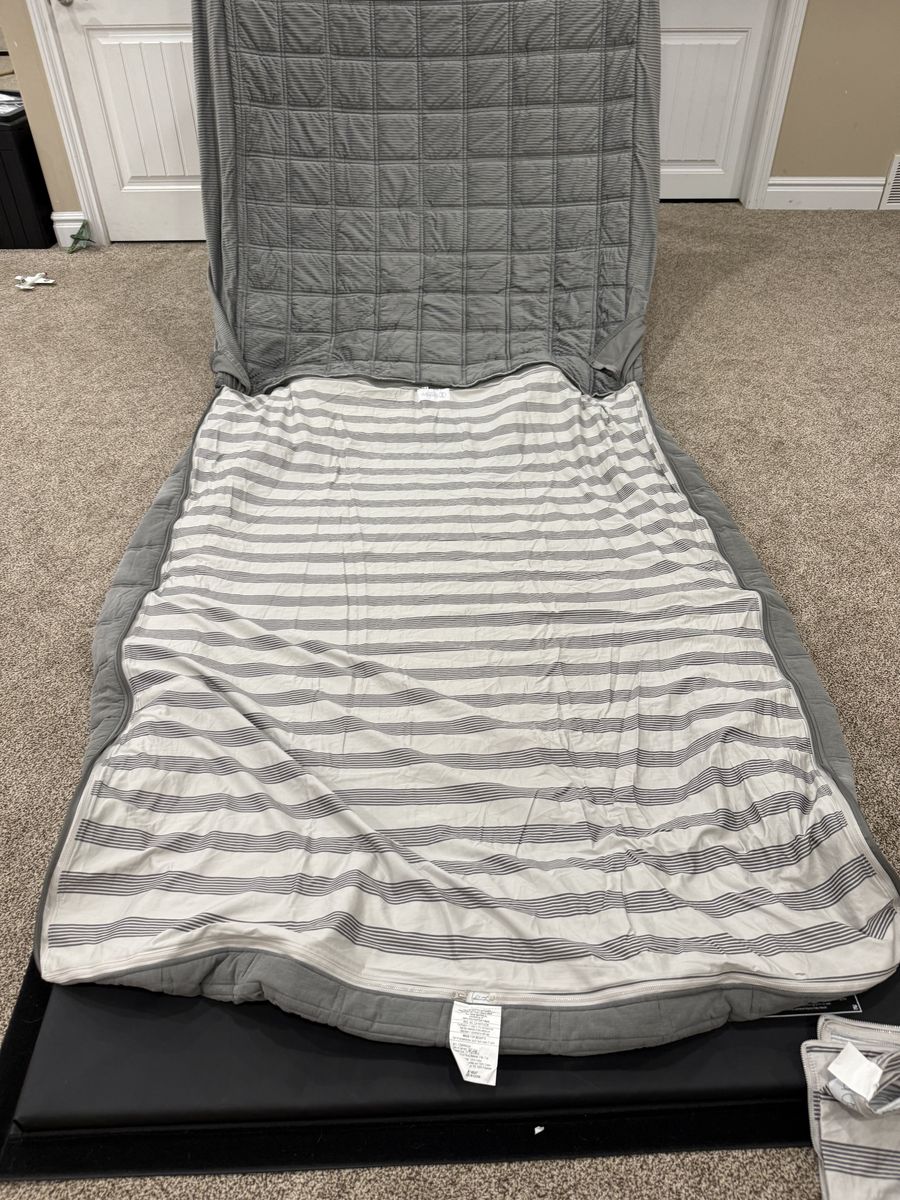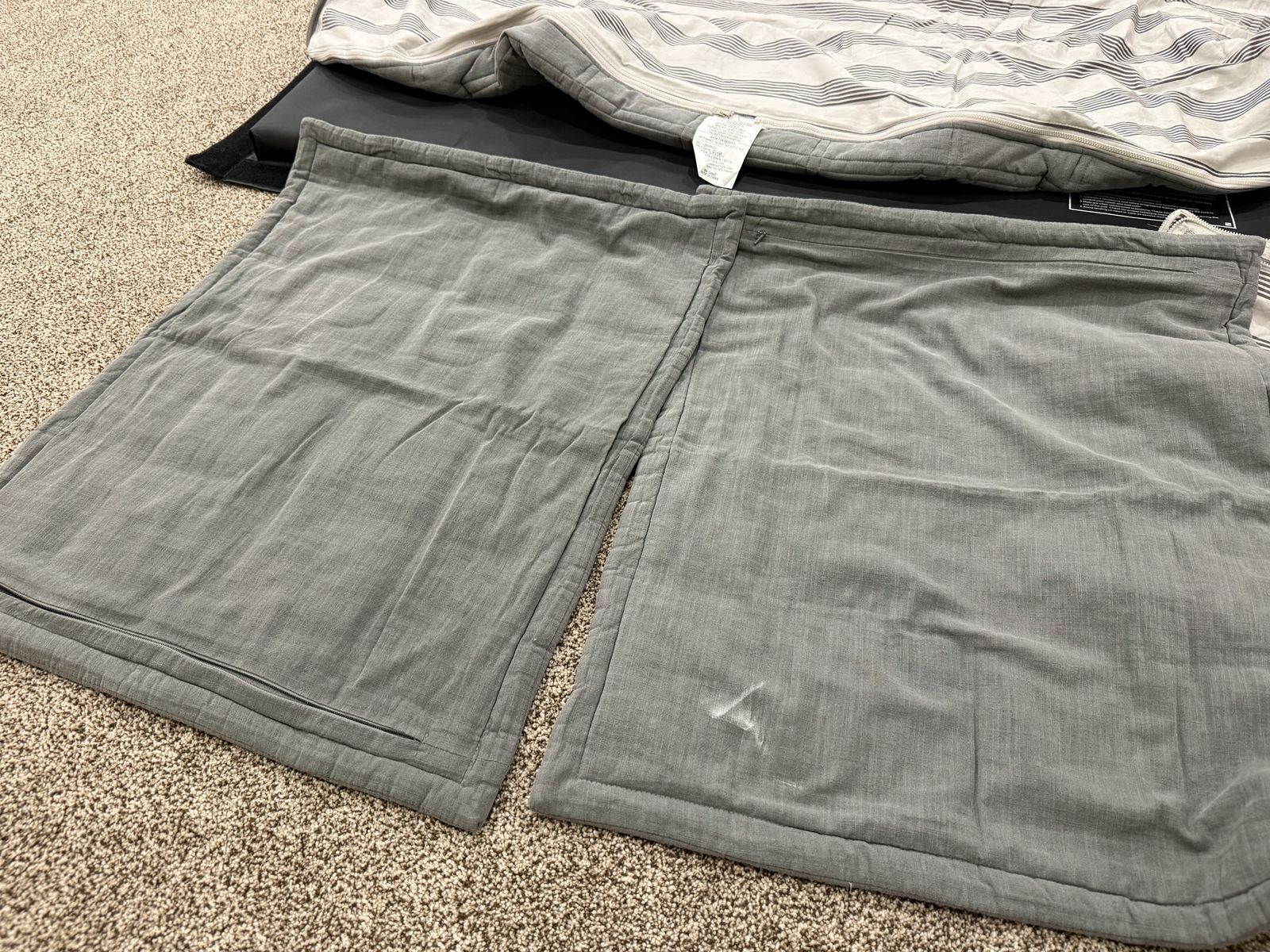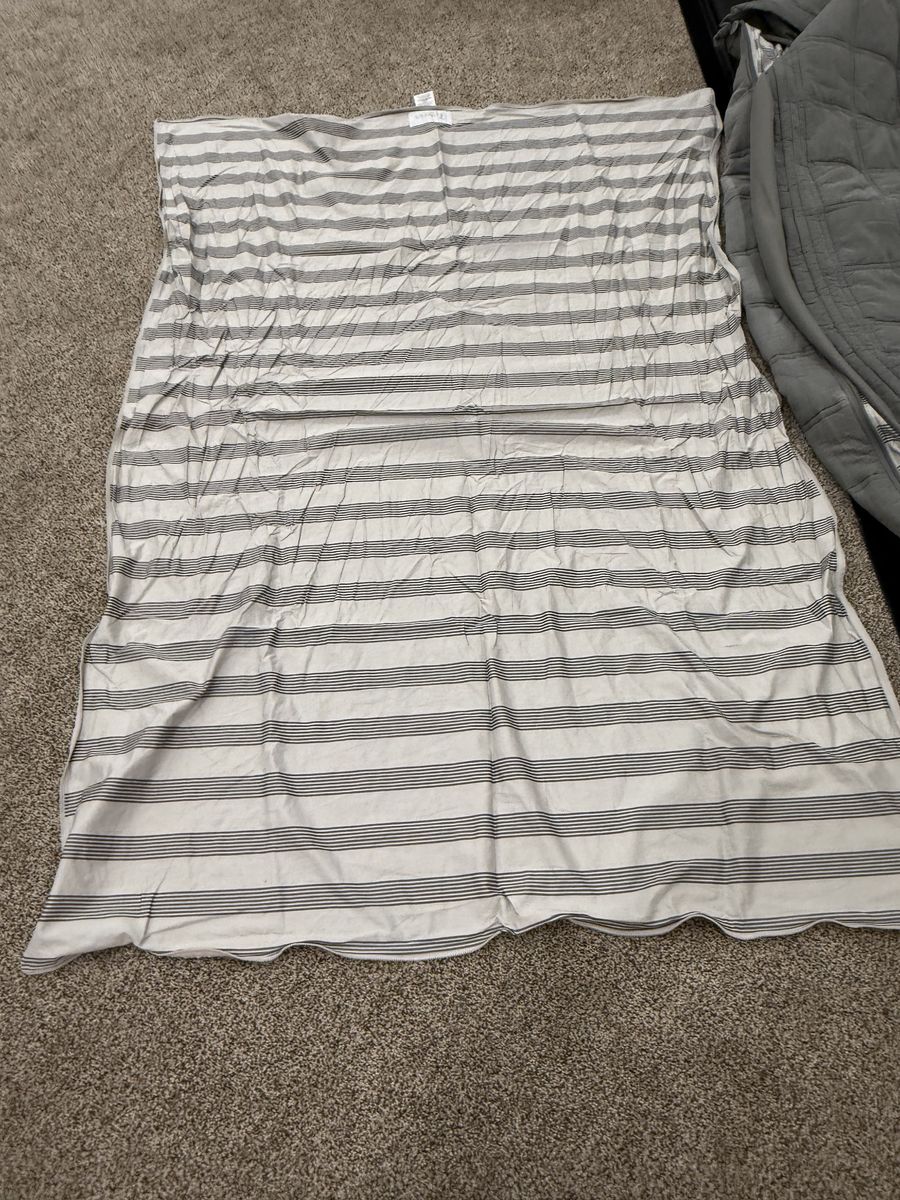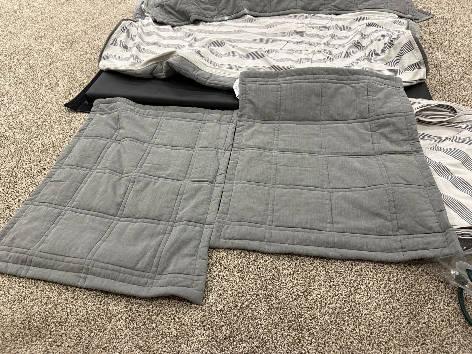 Has 2 sheets and 2 shams and 2 cases. Few very minor signs of use on cases. Some worn spots on fabric. Mar10
