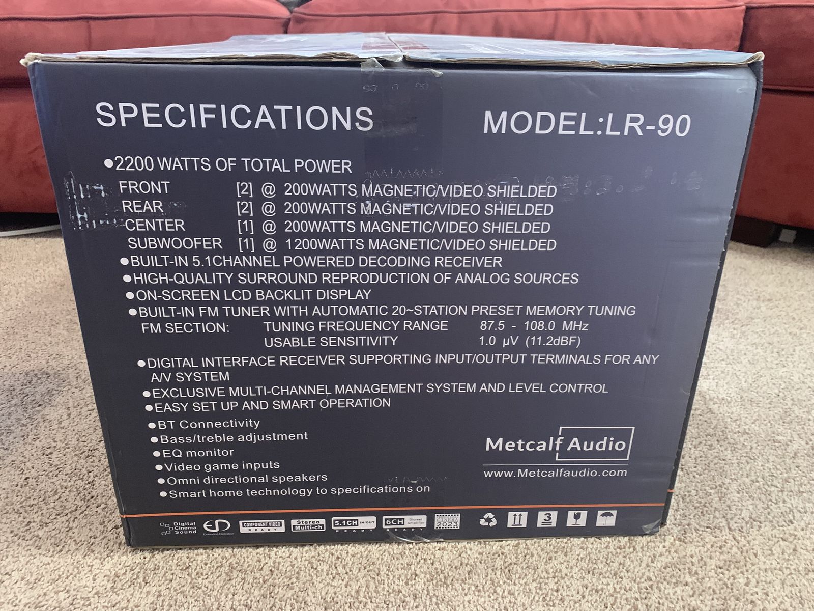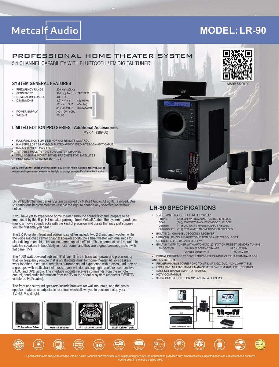 From the website: https://metcalfaudio.com/lr-90-home-theater-system/