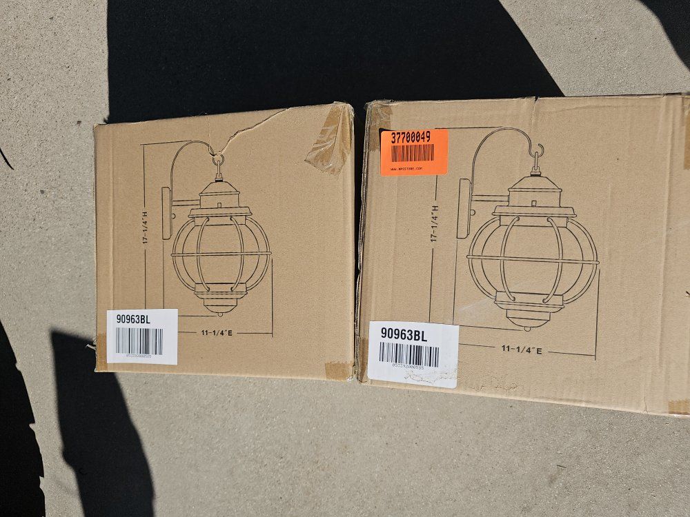light fixtures. New in box. two available 20.00 each. I used a couple of them myself as seen in the picture against the red brick.