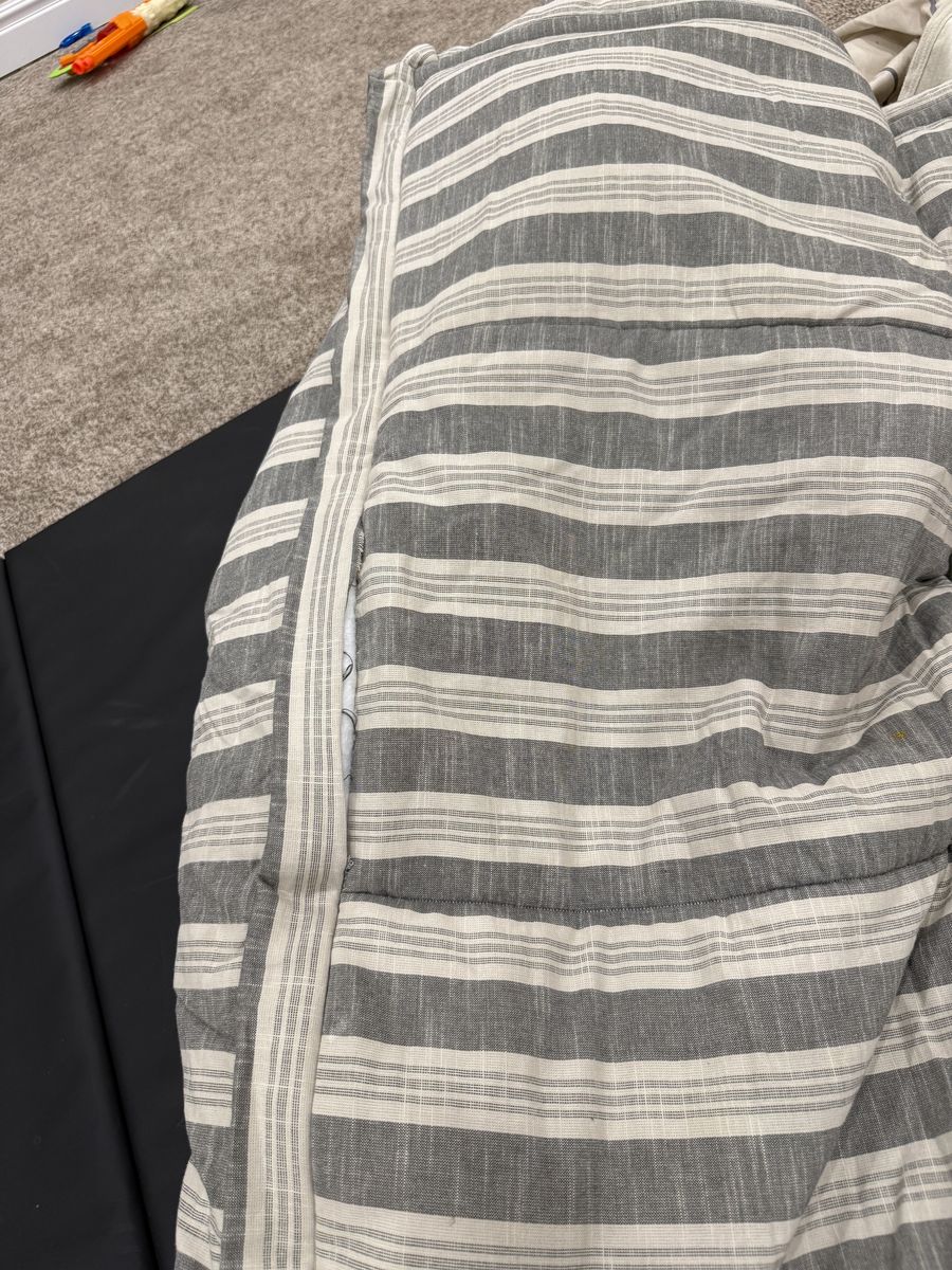 Full sawyer Minky Zipbase. Has 2 shams and 2 cases and 2 sheets. Top has some stains haven’t tried to wash out. Bottom seam coming undone. Mar12