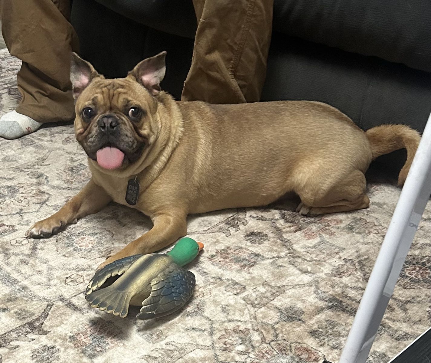 ZelleOzzy is 1 year old frenchie pug mix. He is very well behaved. He is house trained, and kennel trained. Unfortunately we just don’t have the time for his energetic self. He is very friendly and hyper. He is good with other dogs and kids. He is fixed as well. He comes with a kennel, food, toys, and bowls.
