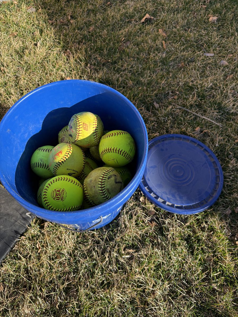 Venmo24 11 inch softballs Used Comes with bucket and lid