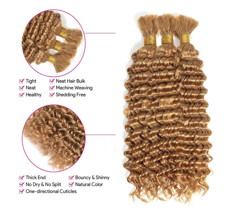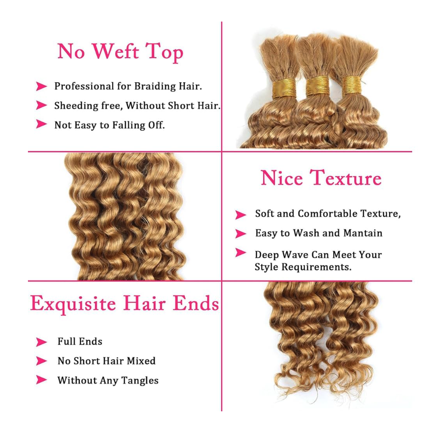 ApplePayCreate beautiful braided styles with this deep wave human braiding hair in a stunning honey blonde tone.