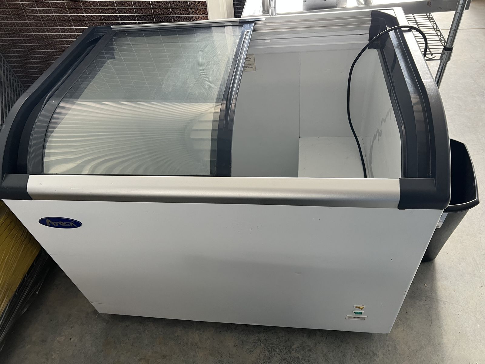 VenmoI have 2 - Atosa MMF9110 Curved Glass Top Chest Freezer no longer needed. They are in excellent working condition. Capacity: 9.6 cubic feet. Temperature Range: Adjustable from -10°F to -1°F, suitable for ice cream and frozen goods. Features: Includes sliding glass lids, interior LED lighting, locking mechanism, and swivel casters for mobility. $600 each. Accepting offers.