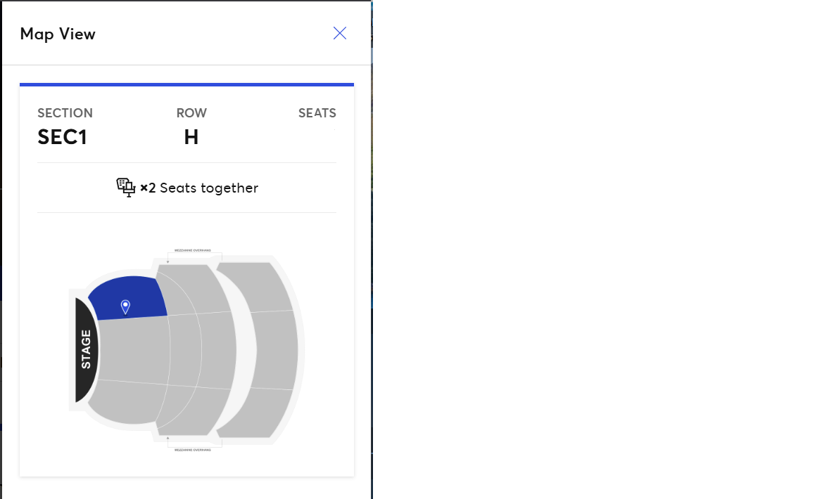 6 rows back from the stage, aisle seat, best view