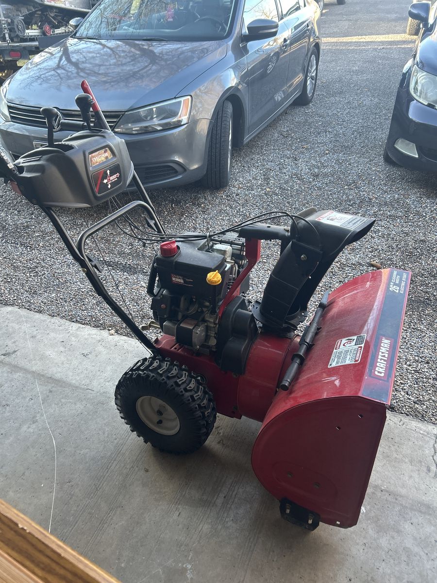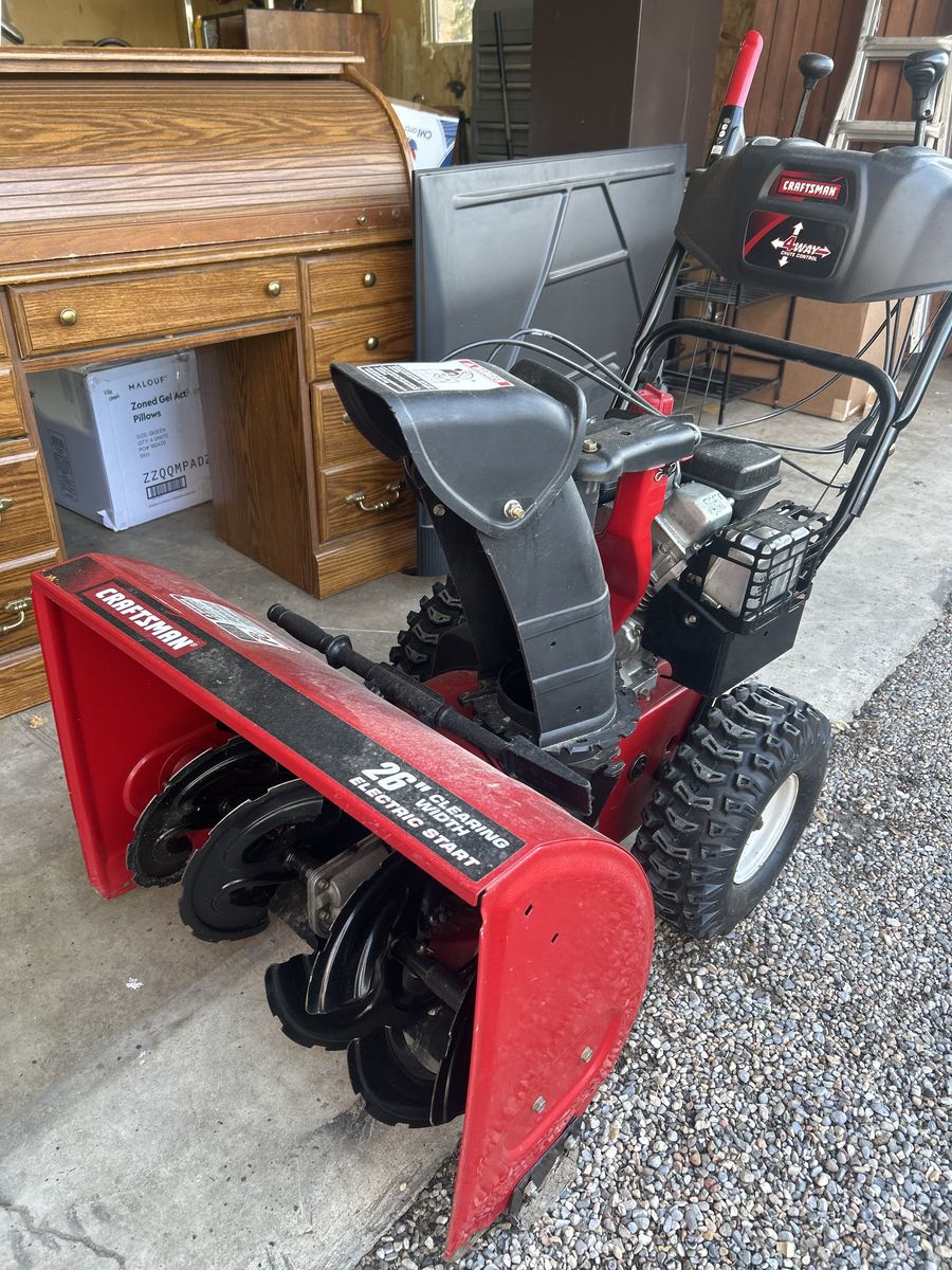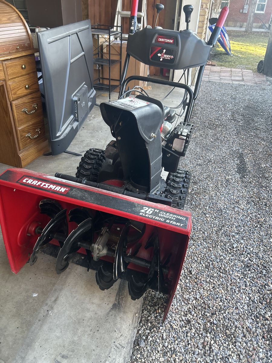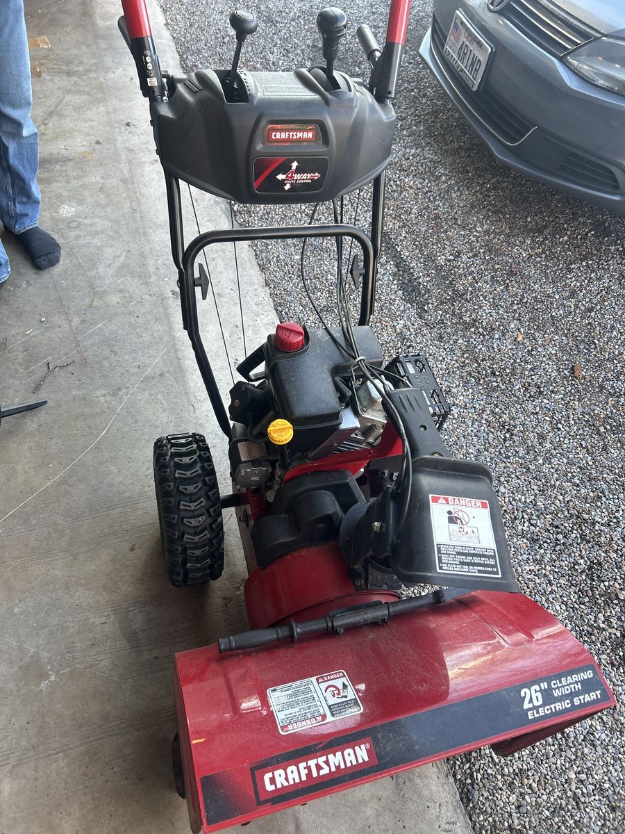 VenmoCraftsman snowblower. 26” wide clearing path. Electric start. In excellent condition. Only used a couple times. Very well taken care of.