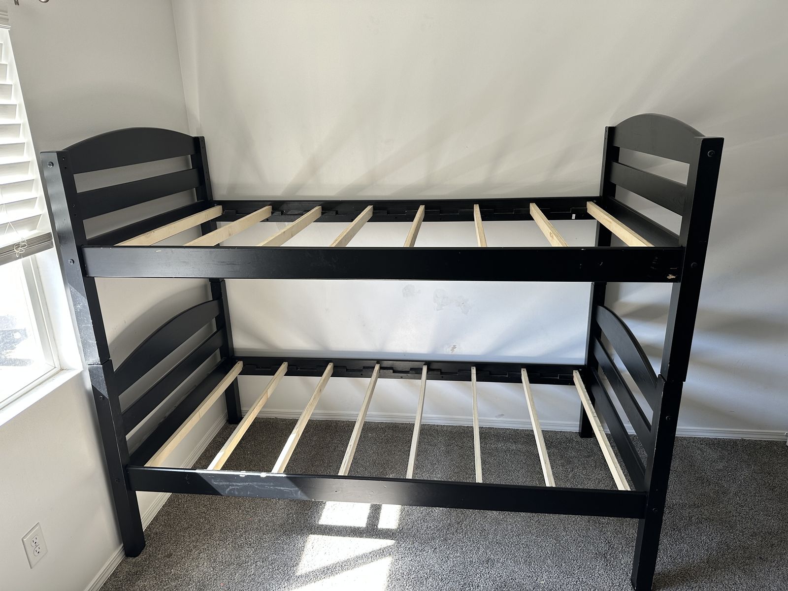 VenmoOriginally purchased new in 2019. Minimal scratches. Asking $100 or best offer. Must pick up in Lehi, UT (near Thanksgiving Point) Stack them or use them as individual units. • All wood frame • Complete with all wood slats • Ladder and top bunk guard rail included