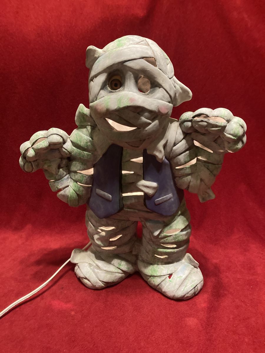 Hello I have a Vintage Halloween Ceramic Lighted Mummy 16 inch Good Condition Works Great