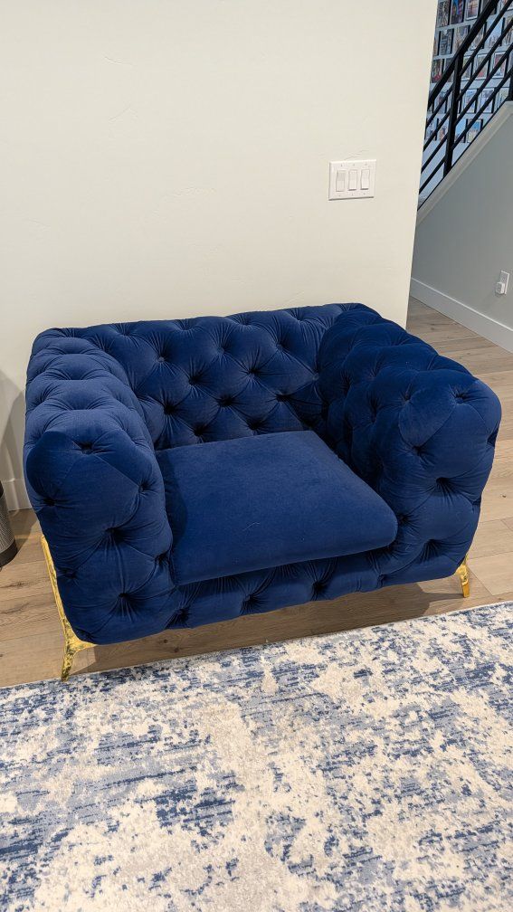 ZelleThe chair is 50" wide. The original price can be seen in the pictures. I have the 3 piece set also available if you want to buy together.