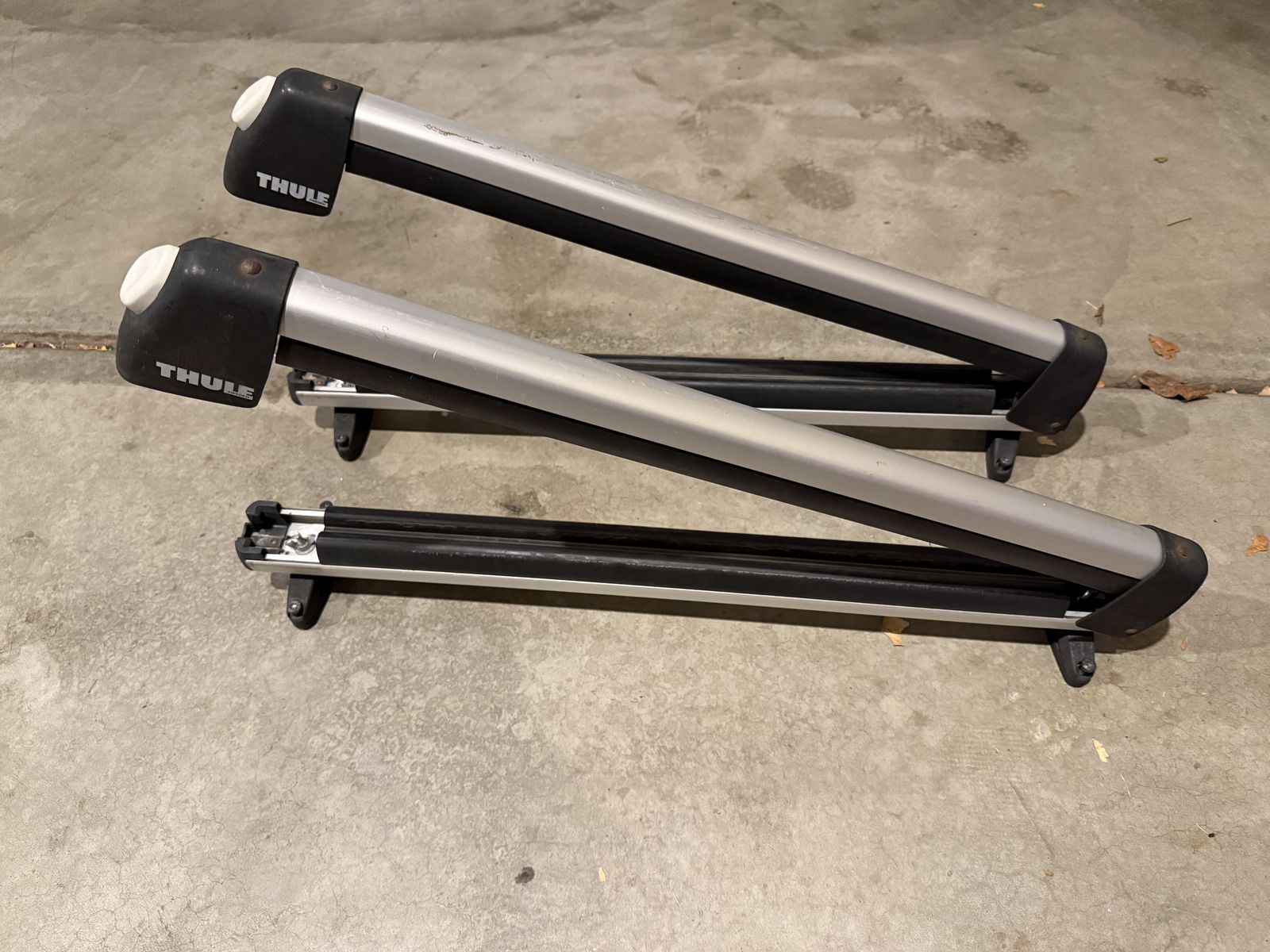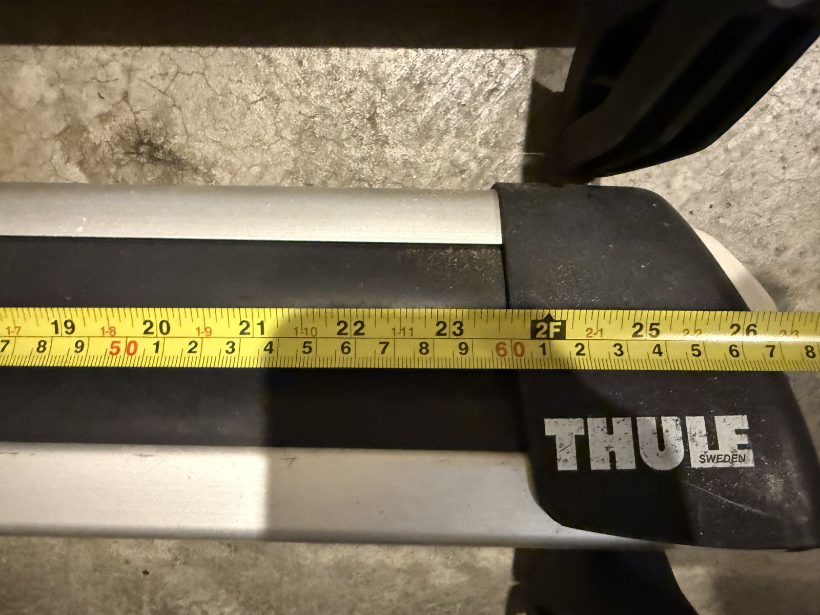 The rack opening is just under 24 inches. The mounting hardware is universal so it should fit most crossbar profiles (see photo). Comes with locks and key.