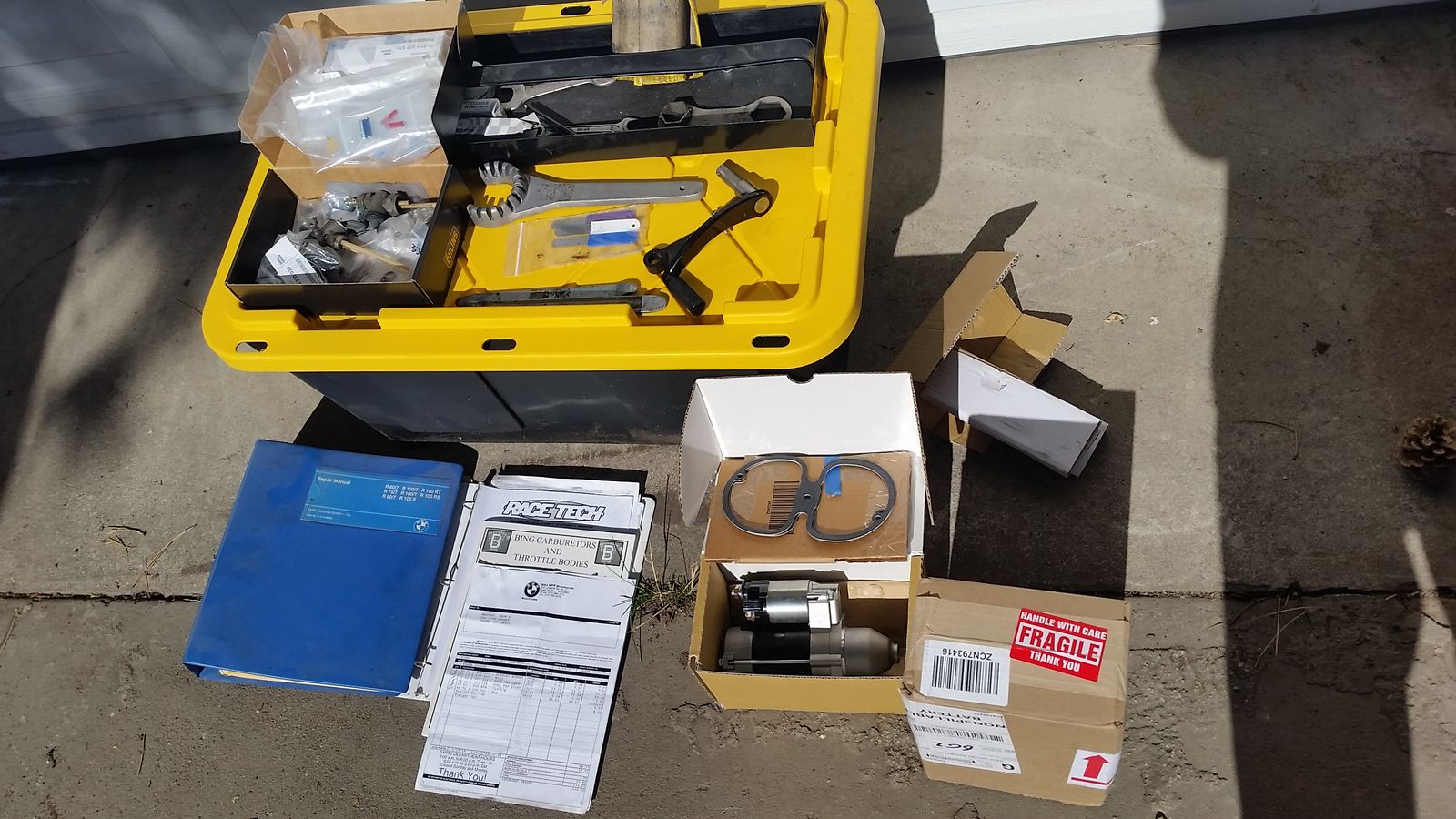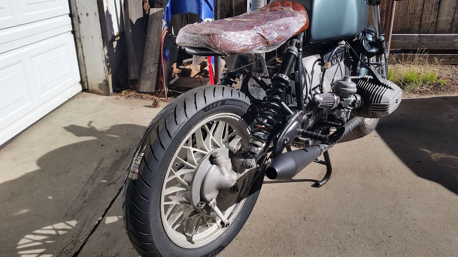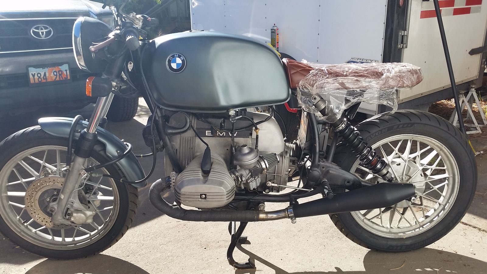 1980 BMW R80. 49K on the clock. All OEM parts retained and part of package. Clutch, forks, and carbs refurbished with new parts. All fluids changed. Includes new battery, starter (not installed), and RaceTech shocks. Running when garaged/stored (carbs need to be balanced). Newish tires. Spares, manuals and some tools included. Title in hand