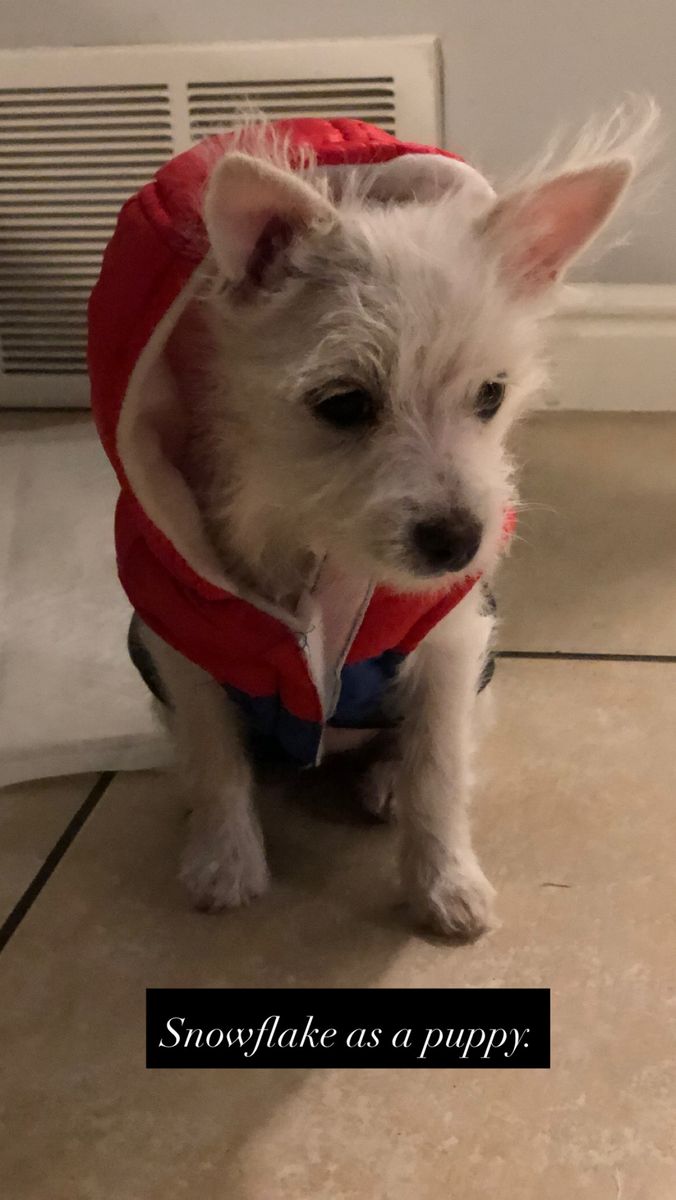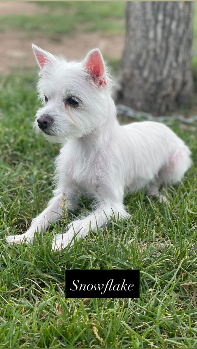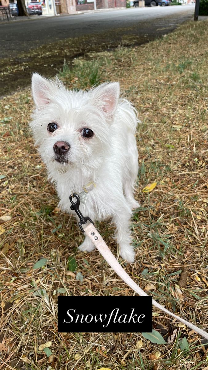 Snowflake is a female who is ¾ Maltese and ¼ Jack Russell Terrier. She is a little shy at first and can occasionally get nervous in new situations, but once she feels comfortable she is the sweetest dog. She is extremely smart, curious, independent, and very considerate. She forms very deep bonds with her person and has a calm, thoughtful personality.
