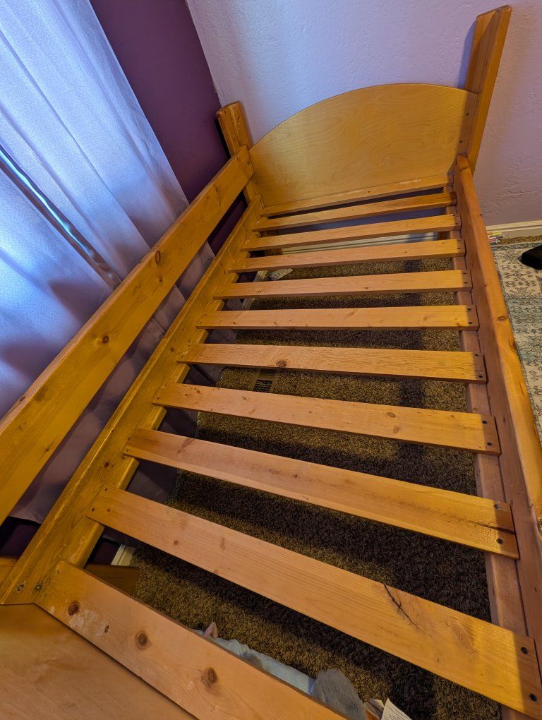 Venmosolid wood twin bed. There are 2 beds and they can be made into a bunk bed. hardware included. asking 150 OBO FCFS NO HOLDS CASH OR VENMO ONLY