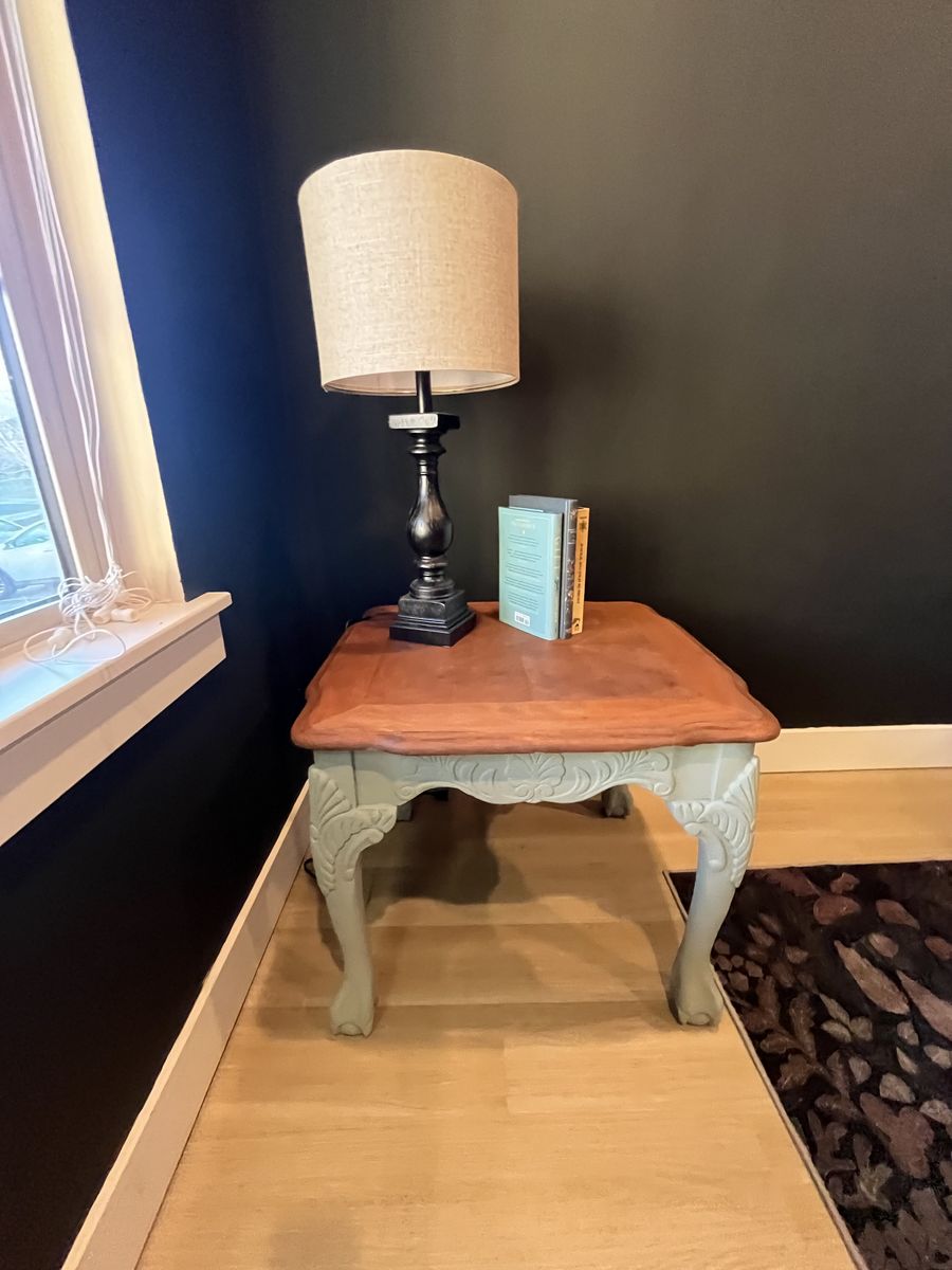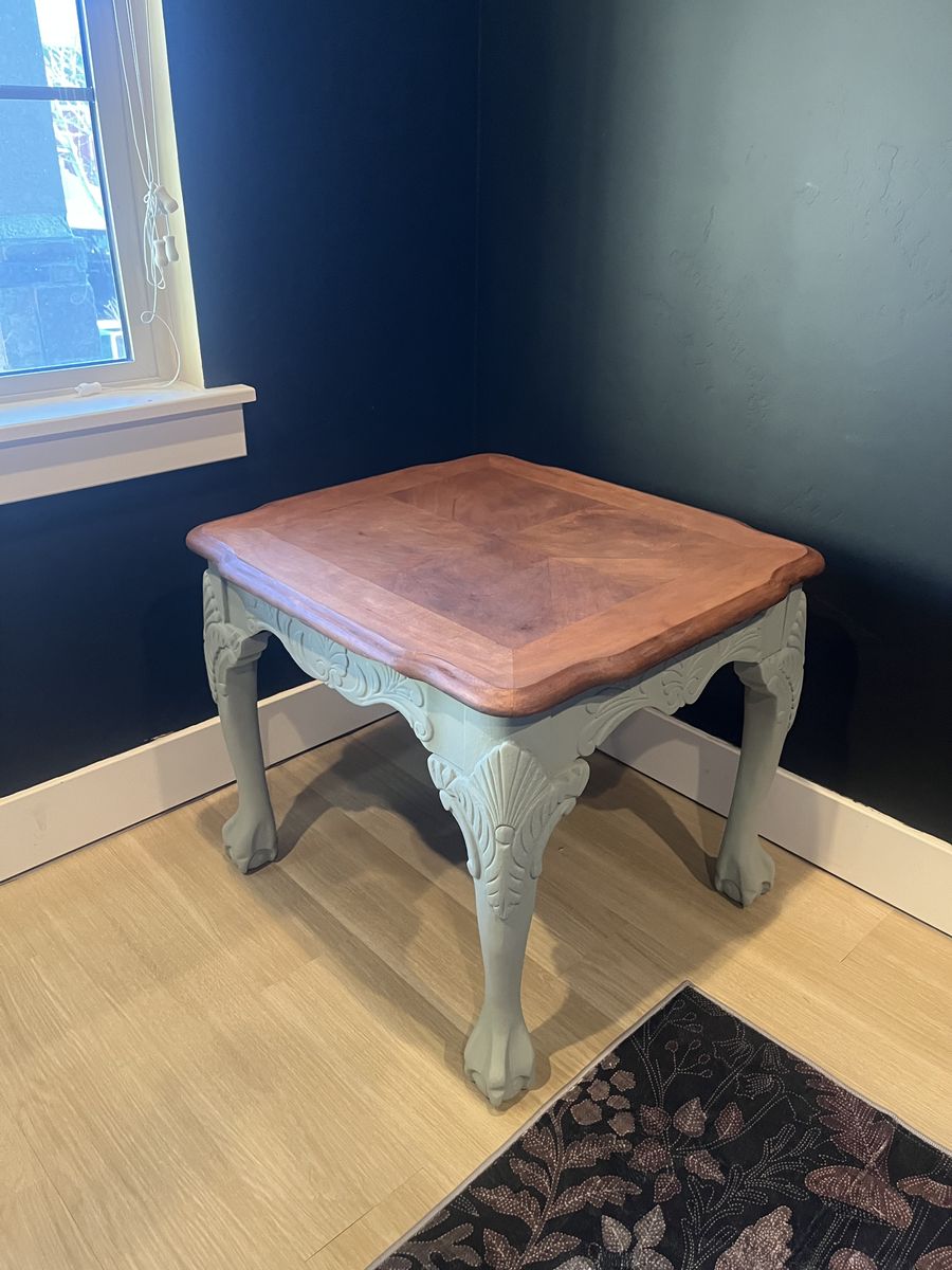VenmoBeautiful refinished vintage end table with carved legs and solid wood top.