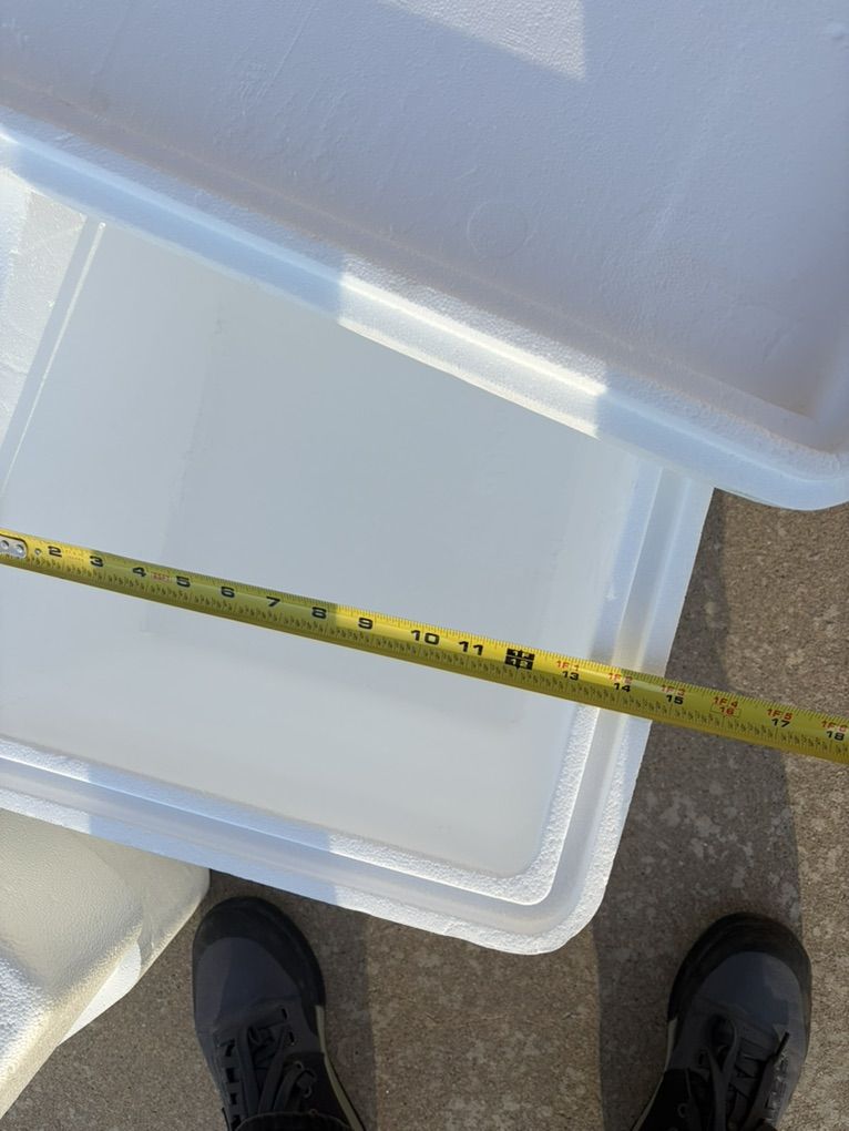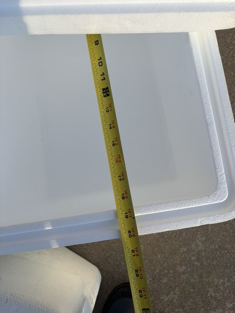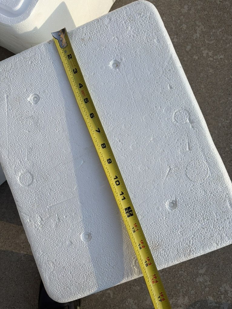 3 styrofoam coolers 2 larger and 1 small I estimate the larger coolers are 24 quarts