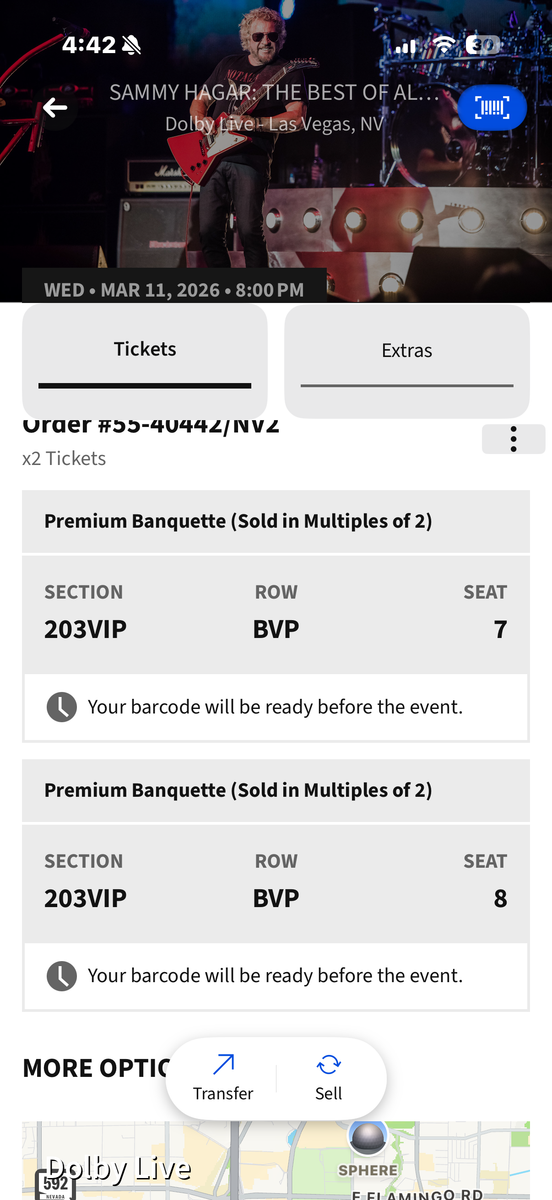 ApplePaySammy Hagar VIP Tickets Las Vegas March 11 at Park MGM Tickets in Ticketmaster and will transfer after payment.